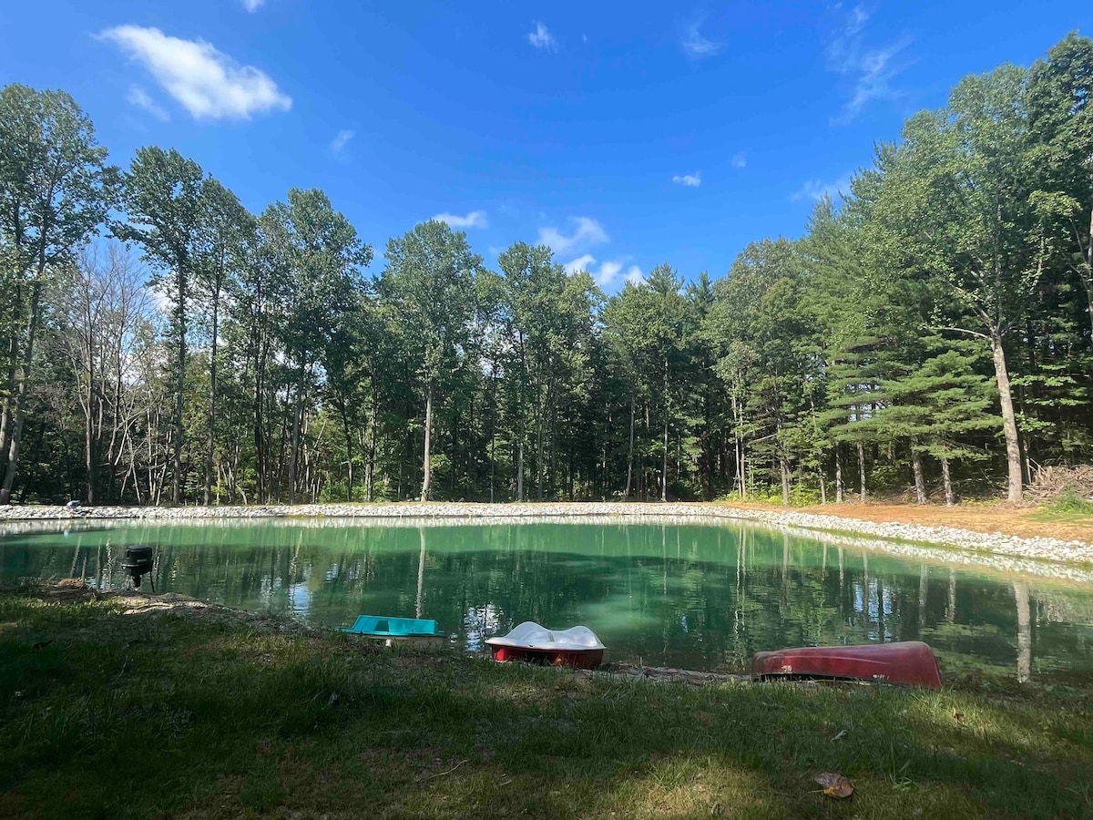 Great, private place to get away for a few days with your spouse; or relax with the family while boating and swimming in our newly updated pond. We'd love to have you come and enjoy our little cabin in the woods and a pond that is just a 300 yard walk down the lane. The owner and family will occasionally spend time at the pond, but guests are welcome to use it at any time.