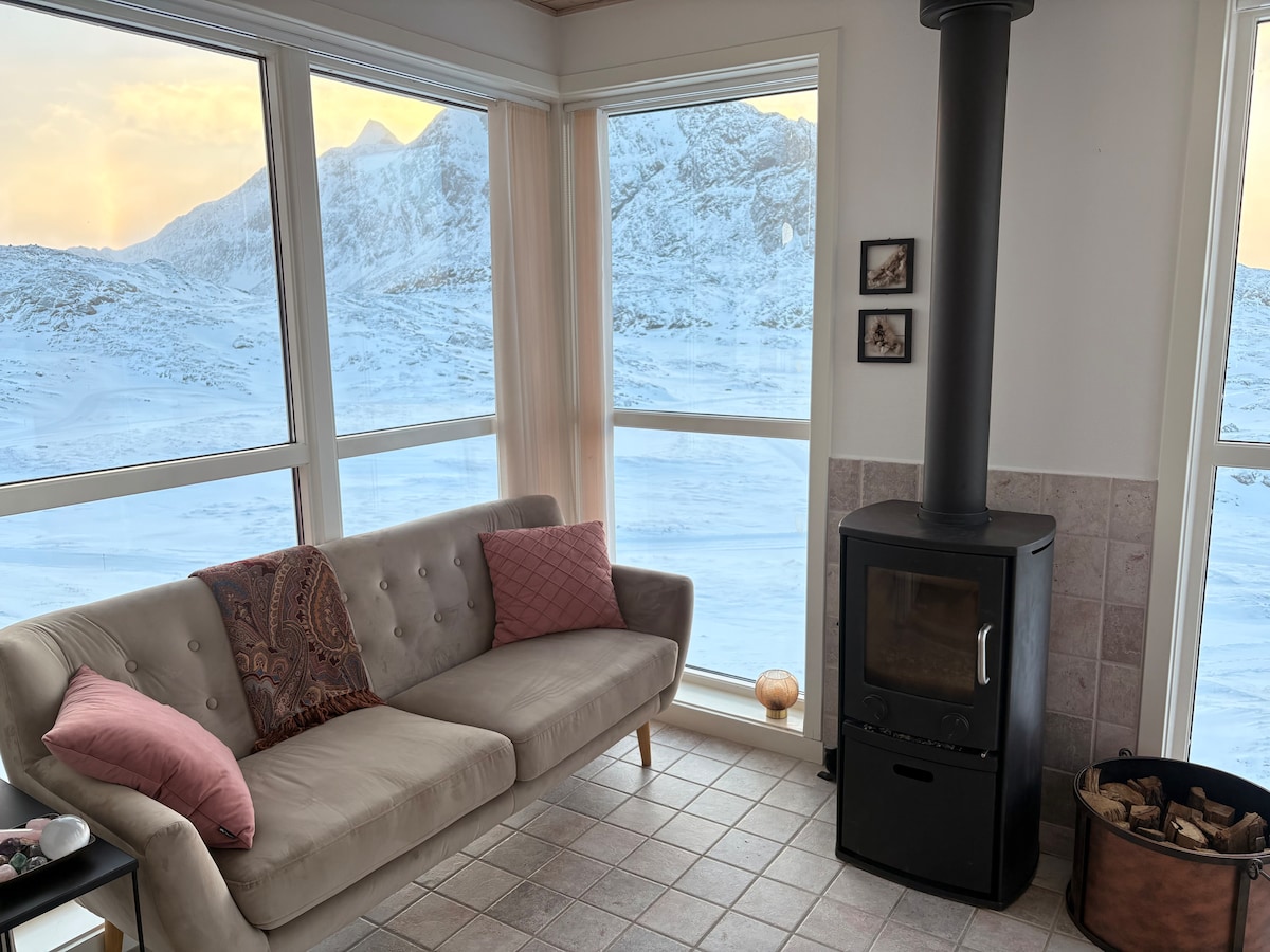 Spacious Villa for families and group's of travelers. Located right Between the coast of the Disco bay, the Hiking trails, and the sledge dog area. Enjoy the view of the mountain's, ocean and icebergs from our house The House can accommodate 7 persons Bedroom 1: Single bed Bedroom 2: Spacious with double bed Bedroom 3 and 4: Twin beds. Or we can arrange beds to your request. The house is a great place to enjoy vacation, exploration as starting point for expeditions, kayaking and hiking.