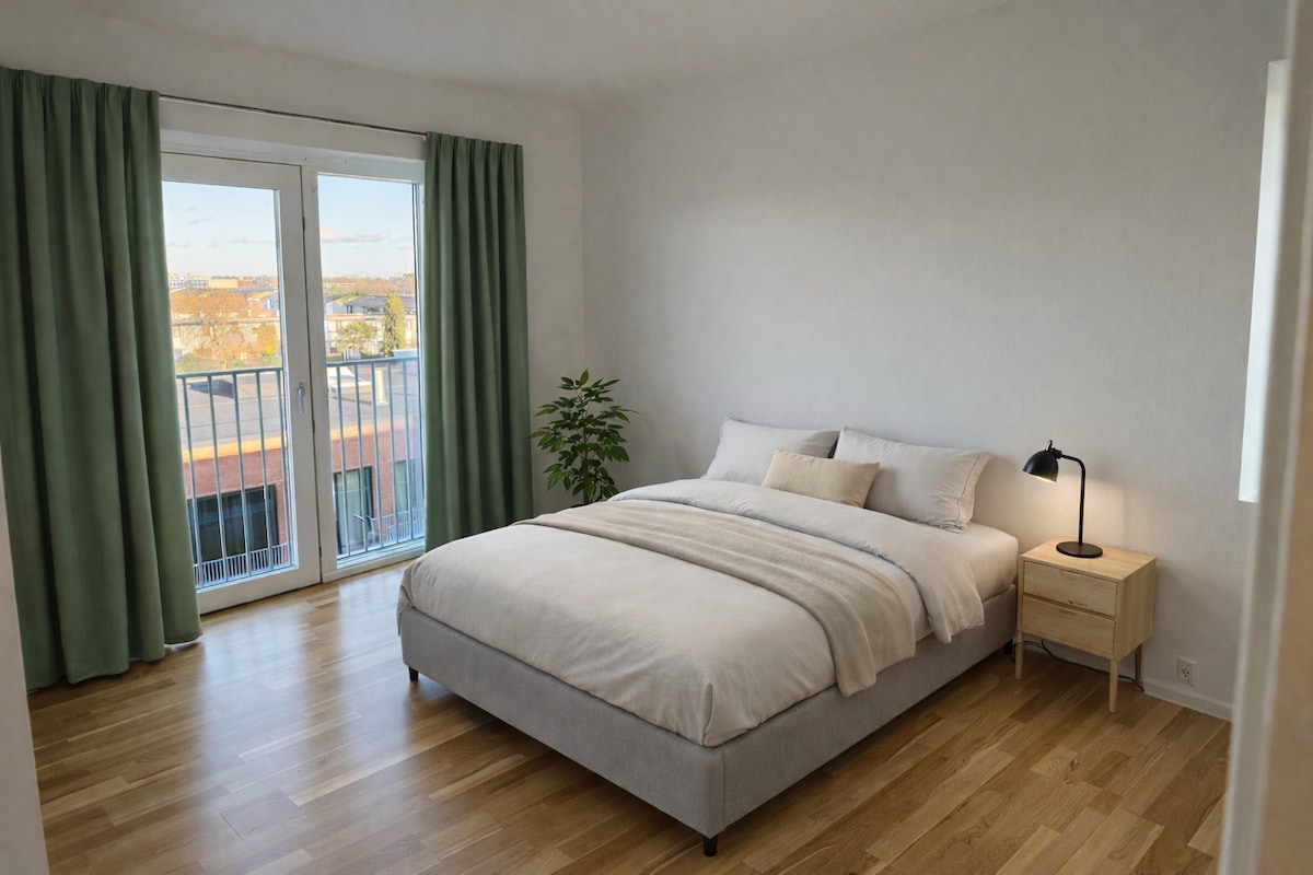 2樓的小型舒適公寓。 提供新的牀單和毛巾。 公寓乘坐S列車前往市中心需時20分鐘。步行30分鐘即可抵達水上和Arken博物館,步行10分鐘即可抵達商場。 位於安靜的住宅區,周圍/租賃區域有購物機會。
