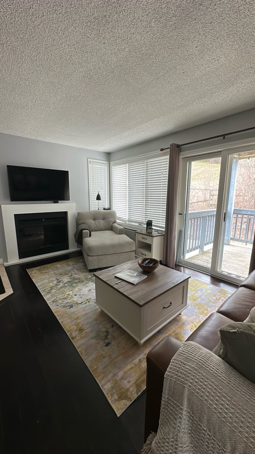 單位位於Living Stone Golf Resort旁邊,距離Collingwood市中心幾分鐘路程,距離Blue Mountain/Scandinave Spa 10分鐘路程。我們的翻新公寓提供現代時尚的優雅。享受625平方英尺的隱私,有兩間臥室和一間帶浴缸和淋浴的浴室。還有沙發、電壁爐、Netflix和基本有線電視、WiFi、套房洗衣機和烘乾機。室外露臺,可欣賞花園景觀。