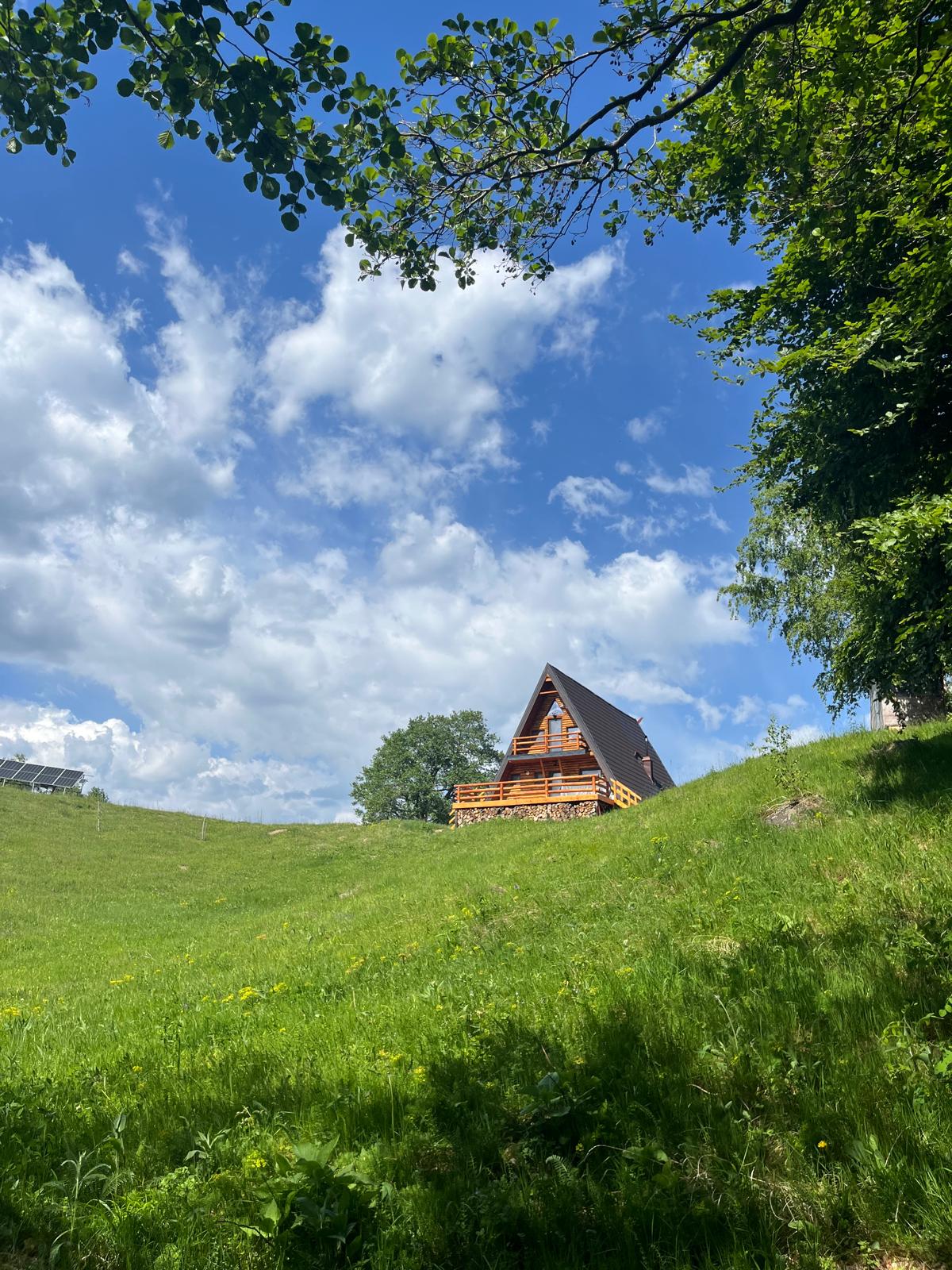 În mijlocul unei livezi deosebite, veți găsi o cabană modernă și minimalistă, învelită în lemn. În spatele ferestrelor mari, lumina naturală pătrunde în interior evidențiind spațiul deschis și finisajele curate. Ciubărul din exterior completează imaginea relaxantă a locului, invitând la momente de răsfăț. Această reinterpretare modernă a cabanei oferă o experiență deosebită, îmbinând confortul contemporan cu frumusețea naturală a mediului înconjurător care poate surpinde prin zgomot neașteptat.