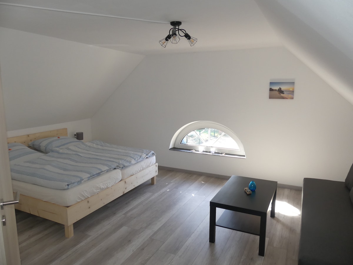 這間約 60 平方公尺的閣樓公寓位於 Aurich 市中心一棟精心維護的受保護城市住宅中。步行區以及De Baalje或港口區的運動設施都在步行走幾分鐘的範圍內。附近有購物設施(食品、藥店)。靠近海岸和坦嫩豪森湖,非常適合一日遊。 該公寓於2015/2016年新擴建並配備了新設備。