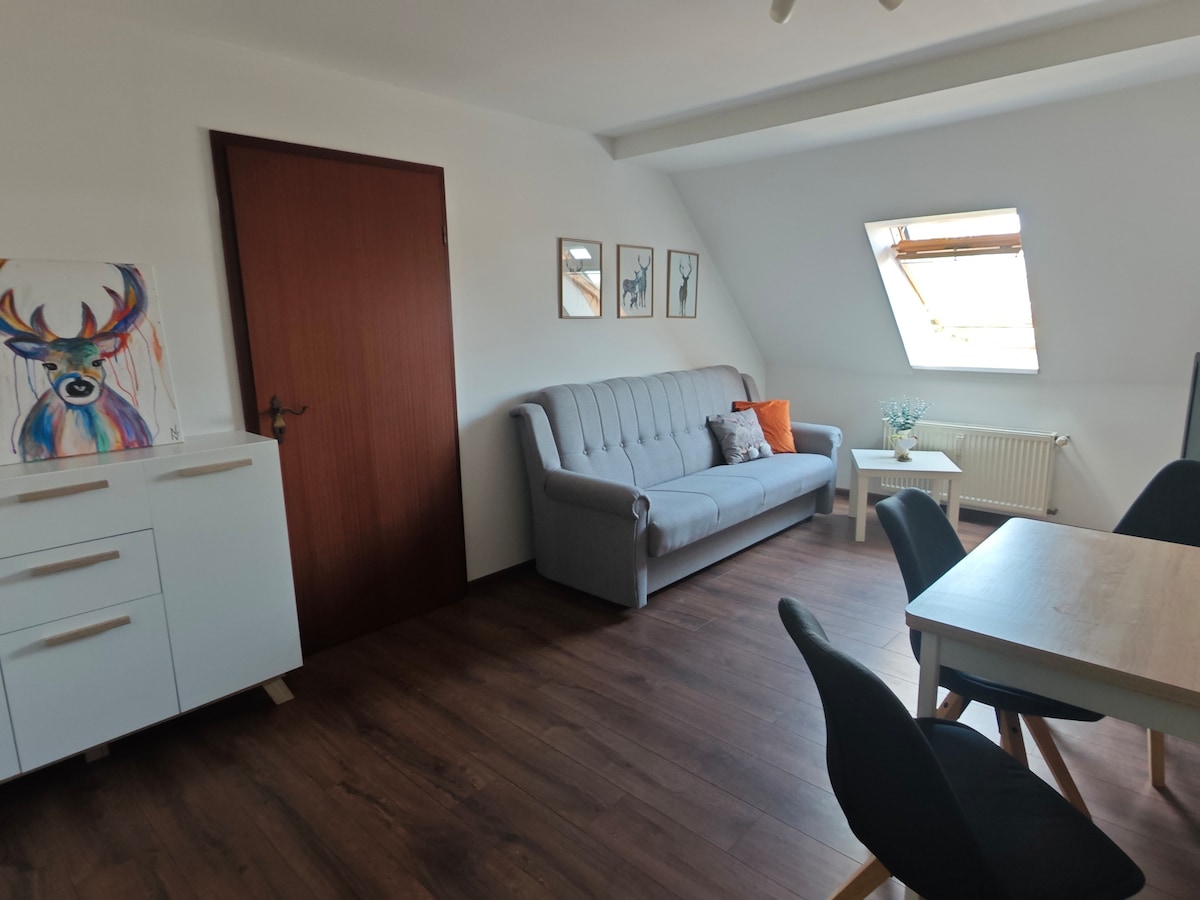 我們出租2套公寓。您正在瀏覽較小的單位。 (您可以在這裡找到較大的單位: https://www.airbnb.de/rooms/21642508 1891 年的馬廄在 2016 年翻修成 3 套房源。周圍的花園正在進行中。房源相當大,您可以隨時在陽光下找到一個安靜祥和的地方。夜空非常適合觀星。每年4月至8月,村裡有多達10個鶴家族築巢。