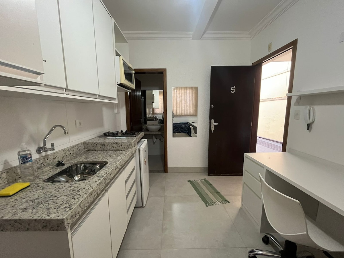 Small Kitnete ,適合01人入住,溫馨且地理位置優越,靠近UEM、新中心、市場、餐廳、市政市場。 它有1張單人床、衣櫃、32英寸LED電視(帶電視盒)、檯面(帶椅子)、天花板風扇、桌面風扇、迷你吧、爐台、微波爐、水槽、櫥櫃、帶玻璃盒的浴室。 提供牀上用品和浴巾以及超細纖維毯。 安靜的家庭大樓,配有洗衣房和WiFi。 沒有車庫空間。