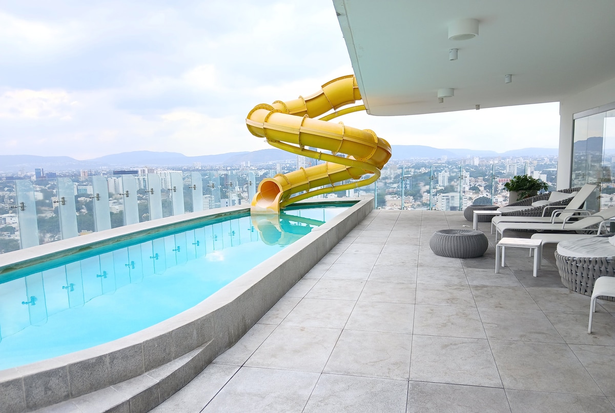 這間寬敞的公寓可俯瞰現代化的瓜達拉哈拉市,讓您驚喜不已。從您的房間或客廳出發,享受陽臺,在早晨喝咖啡或在日落時分品嚐葡萄酒時欣賞令人驚嘆的景色。 大樓內設有健身房、無邊際泳池和桑拿房。大樓大堂設有 WiFi 工作區(公共區域),以及配有舒適沙發的休息區,非常適合放鬆和閱讀。