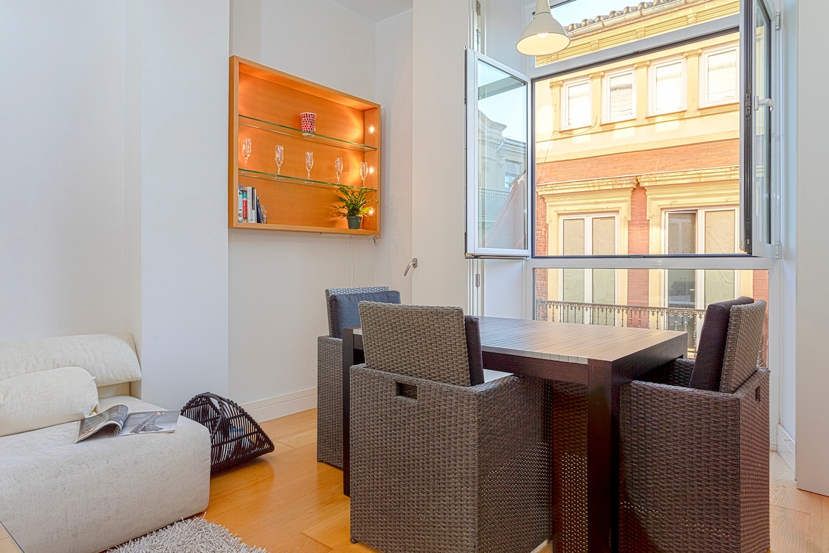 Los Ventanales是我們經典的19世紀兩房公寓,位於充滿活力的馬拉加舊城區中心。 位於Calle Larios和Calle Nueva之間。 公寓部分翻新,保留了原來的茱麗葉陽台、大窗戶和高天花板,營造出明亮陽光的空間,可欣賞聖胡安教堂的美麗景色。 * * *全新* * * 我們最近在兩間睡房都安裝了隔音窗戶,以大幅減少夜間的街道噪音。