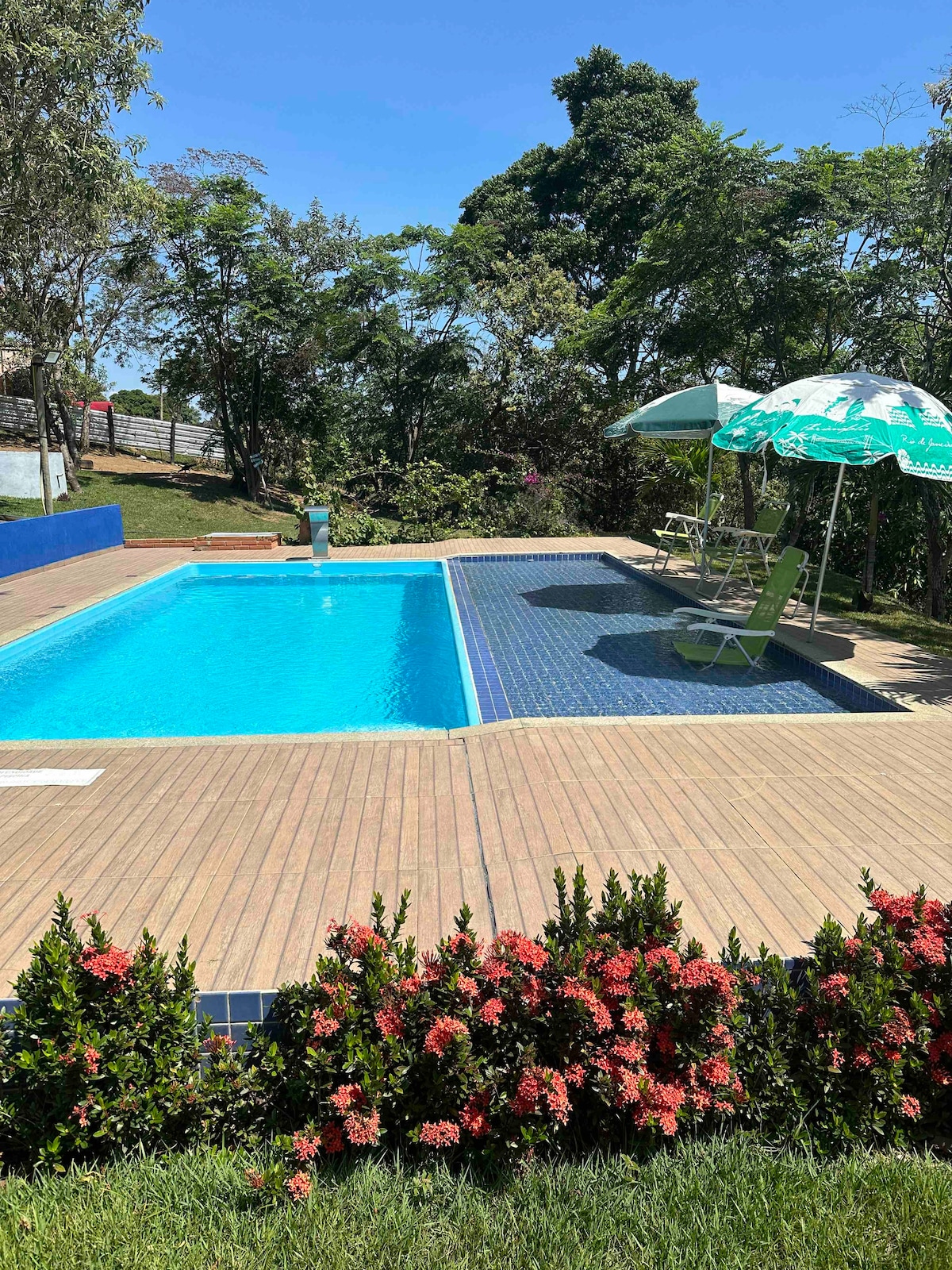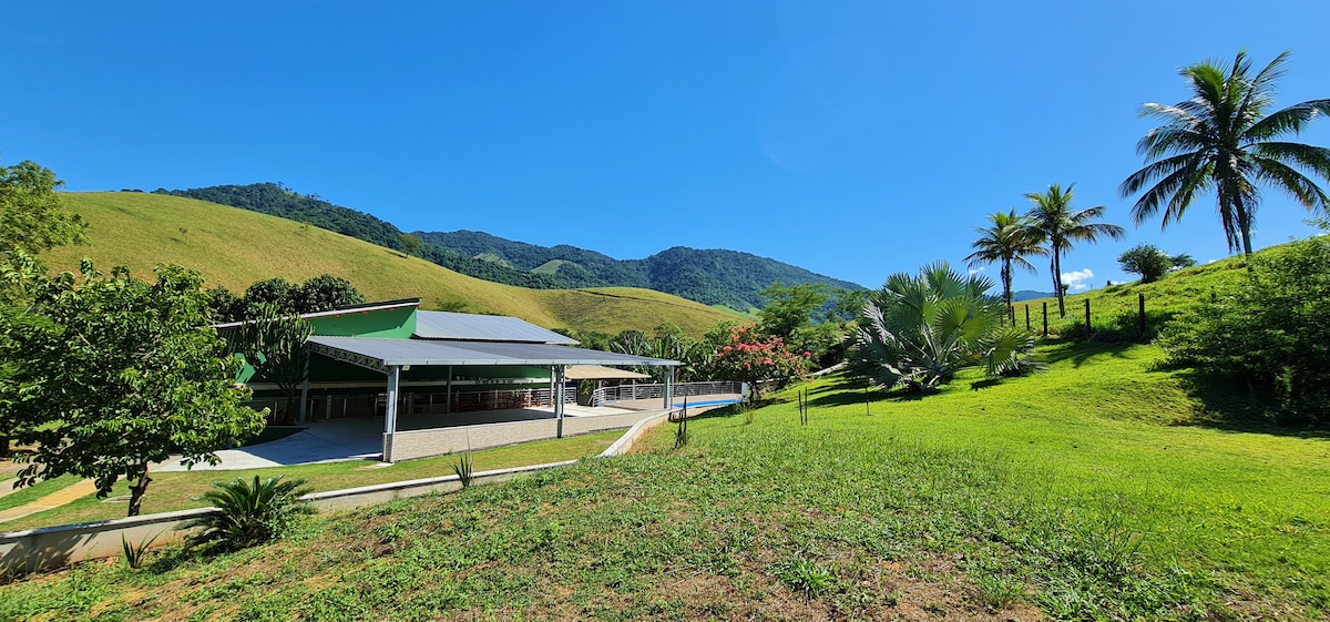 農場內的美麗房屋,設有泳池(鹽基處理,不含氯),非常適合在豐富的自然環境中放鬆身心。 地板壁爐保證在寒冷的夜晚營造溫馨的氛圍。 距離聖埃斯皮里圖州瓜拉帕里(Guarapari-ES)最好的海灘幾分鐘。 非常適合尋求寧靜和靠近大海的人,以及享受戶外散步的人。 來親身體驗這個獨特的體驗吧。