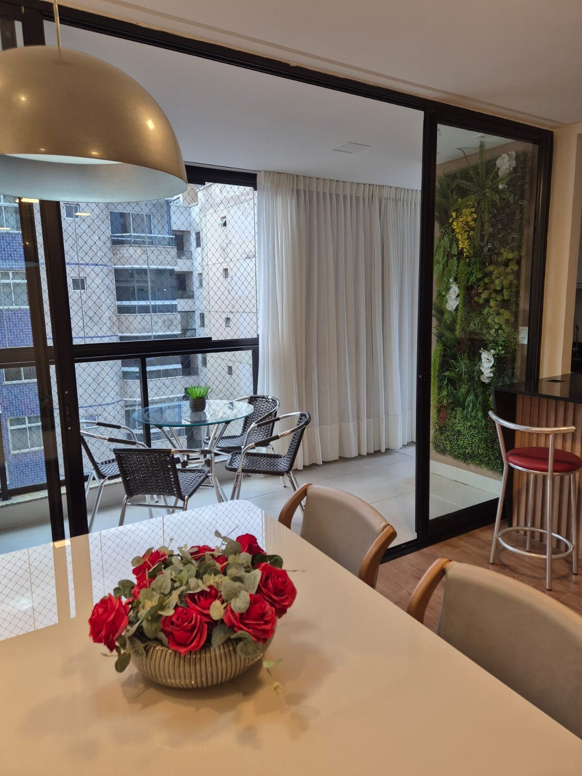 Conforto, luxo e tranquilidade. Isso você encontra em nosso apartamento que foi cuidadosamente projetado para lhe proporcionar uma experiência inesquecível com o MAR. Nesse ambiente arquitetônico clean, moderno, tecnológico e sofisticado você poderá usufruir da sensação de estar em um navio em alto mar. Você merece ter essa experiência! Sinta o cheirinho do churrasco com essa bela vista enquanto relaxa em nosso balanço panorâmico. Você não vai se arrepender!