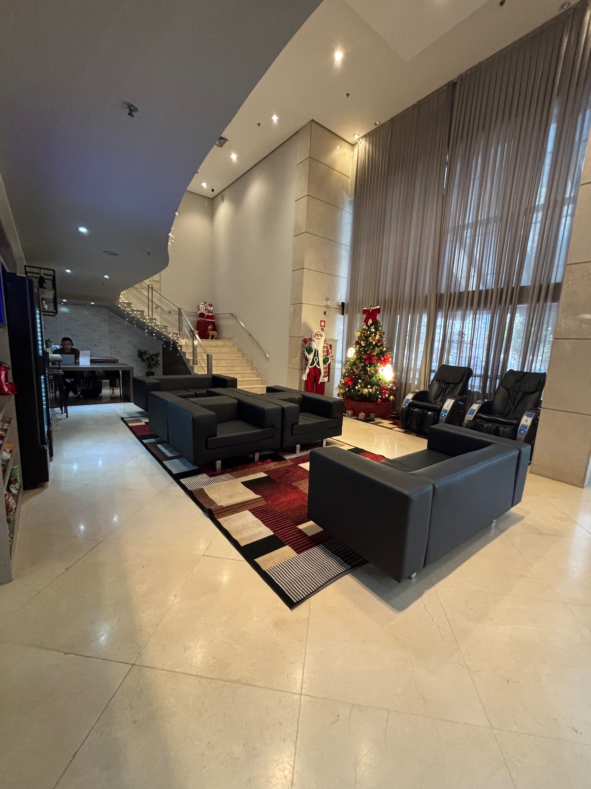 Flat 406位於瓜魯柳斯的Slaviero飯店內。位於市中心,距離瓜魯柳斯國際機場僅幾分鐘路程,非常適合在長途航班前後尋找住宿或在市中心活動的人。 重要提醒:我們不提供提前入住或延遲退房。 超級舒適的30平方公尺公寓,配有雙人床、冷氣、私人浴室、電視、迷你吧、公共區域的游泳池,房價包含停車位。