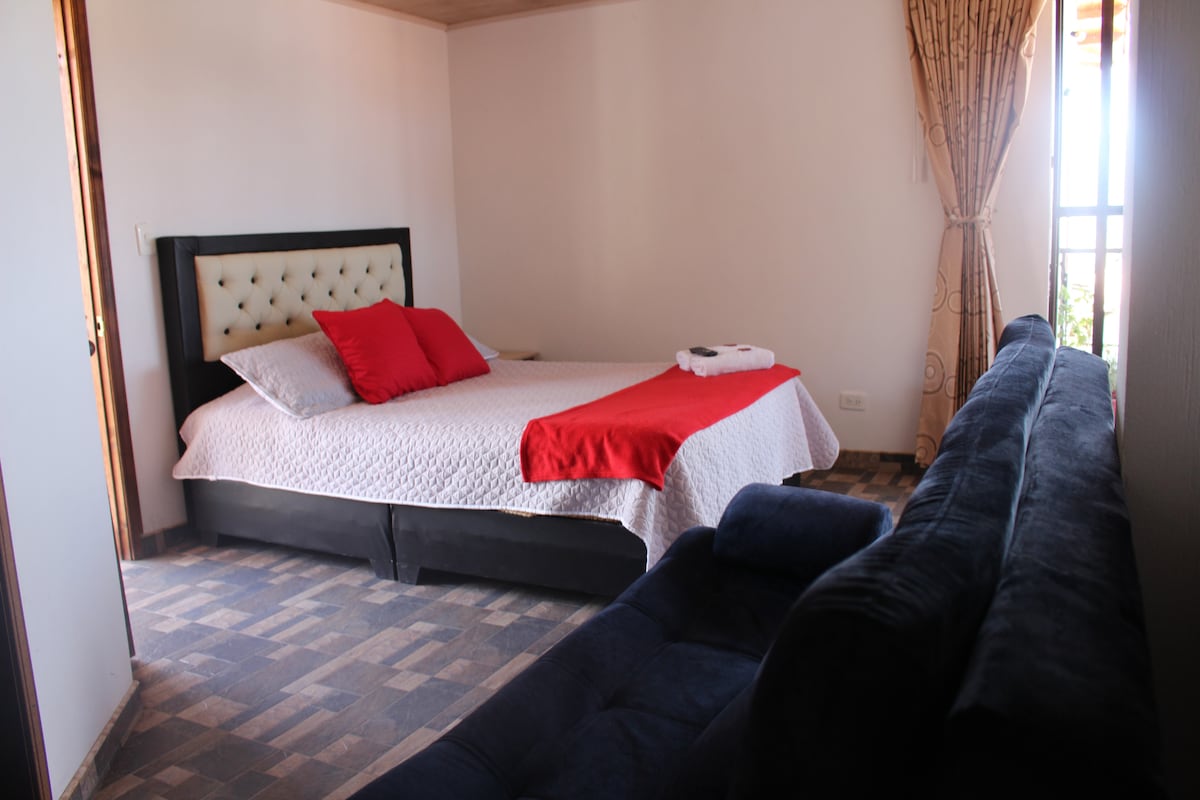 美麗的小木屋,適合與家人或朋友一起享受,距離市中心僅1公里,距離波哥大1小時30分鐘。四周環繞著大自然,可俯瞰水庫、花園、綠地,並配備了您所需的一切,讓您享受一段美好的時光。配有 Wi-Fi、壁爐、停車位。 美式早餐服務需額外收費,需提前 24 小時確認;提供燒烤篝火服務。 您可以安排騎馬、帆船、四輪摩托車等活動。