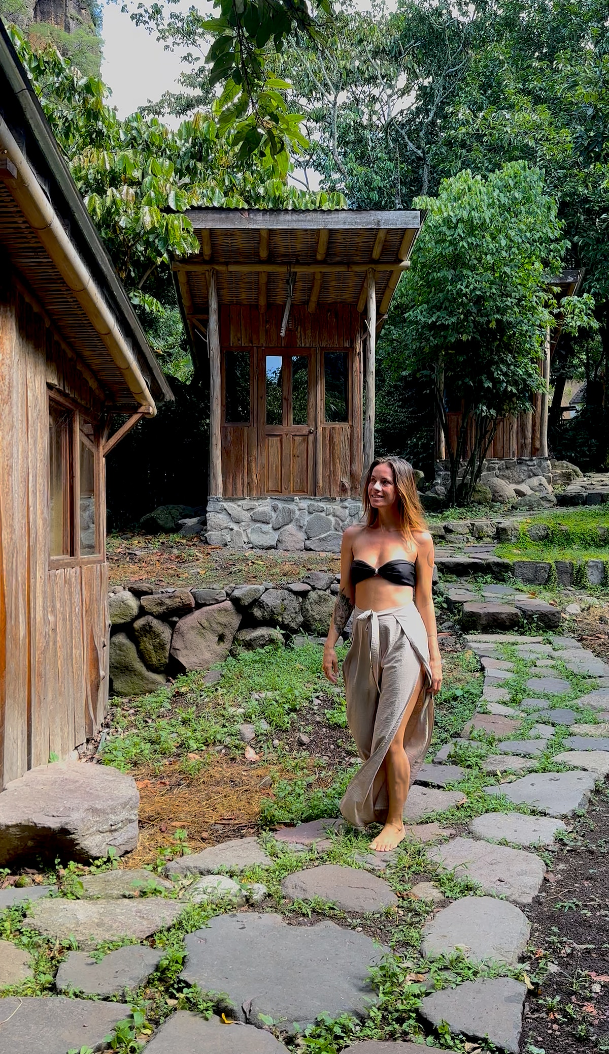 這是我們的小平房之一。它相當小,但手工精美。非常適合單身旅客、情侶或好朋友入住。 這間平房是我們房源的最高位置,但這是我最喜歡的,因為浴室裡有一棵令人驚嘆的活樹,上面有蘭花生長。 它還有一個前廊和次要休息區域。直接預訂的價格大幅降低,且有更多可供預訂的日期。