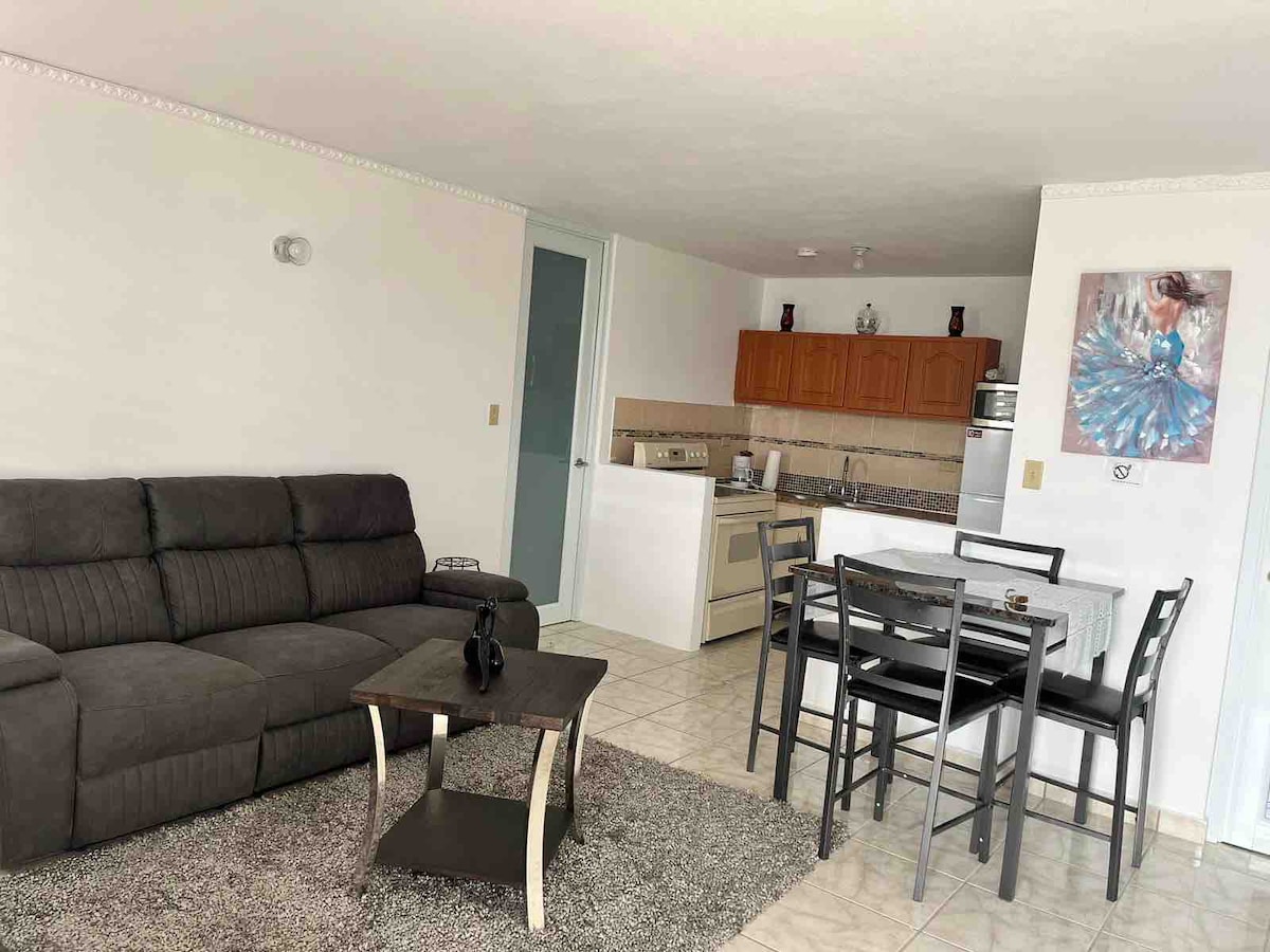 舒適的公寓,完全私密,有獨立入口。客廳、廚房、餐廳1間全功能浴室、1間配有1.8公尺寬雙人牀的臥室、私人陽臺。 配備冰箱、爐具、咖啡機、微波爐、空調和電視。位於市中心,有主要道路和超市。距離Luis Muñoz Marin機場、海灘10分鐘,是夜生活、餐廳和酒吧的最佳地點。