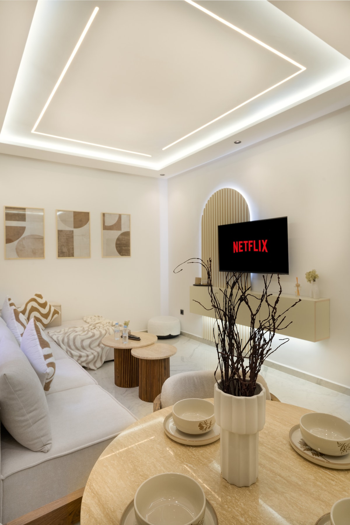 Expérience immersive dans un appartement-galerie contemporaine. Parfaitement situé dans le Triangle d’Or festif, 15 min à pied de la médina. Cet appartement très haut de gamme de 140m2 lumineux et cosy. À deux pas des palaces emblématiques (Mamounia, Sofitel, Casino) Résidence de prestige avec piscine. Idéal jusqu'a 5 voyageurs, il offre 2 chambres, 3 terrasses, 2 salles de bain et 3 WC. Entre ambiance branchée et animée, une expérience unique au cœur de Marrakech vous attend.