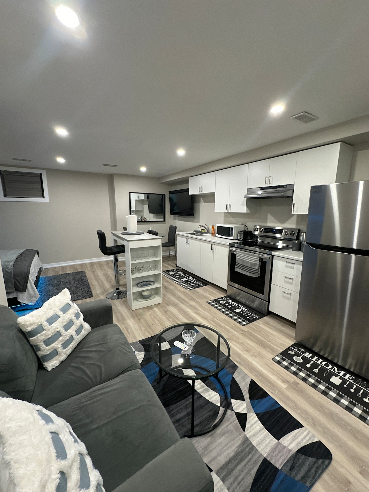 This charming home in centre of GTA as 20 Min to Pearson Airport , 45 min to Niagara Falls, 45 min to Toronto downtown private backyard with stunning forest views—perfect for relaxation and nature lovers. It’s private basement with - Separate entrance (Private Garage Entry) . - Separate Kitchen - Separate Washroom We Will provide fully furnished basement with full kitchen setup , Fridge , Microwave oven , Coffee Maker, Queen size bed, night lights , shows