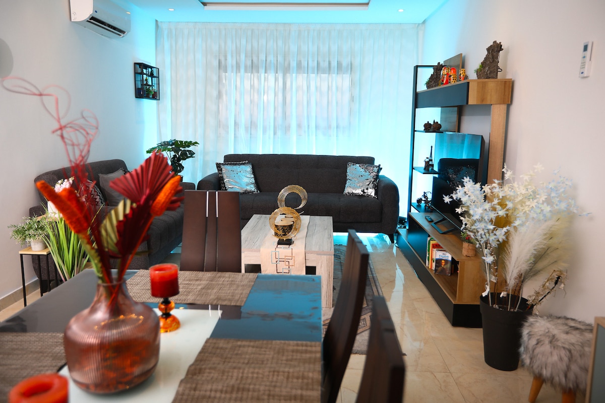 Bienvenue dans notre appartement confortable et lumineux, idéal pour un séjour en famille ou entre amis. Situé au deuxième étage, l’appartement se compose de deux chambres spacieuses, d’un salon accueillant, d’une cuisine équipée et deux salles de bains.Pour votre confort, vous bénéficiez également d’un parking sous-terrain sécurisé, L’appartement est propre, calme et bien aménagé pour vous offrir un séjour agréable,L’appartement n’accepte pas les couples non mariées,merci