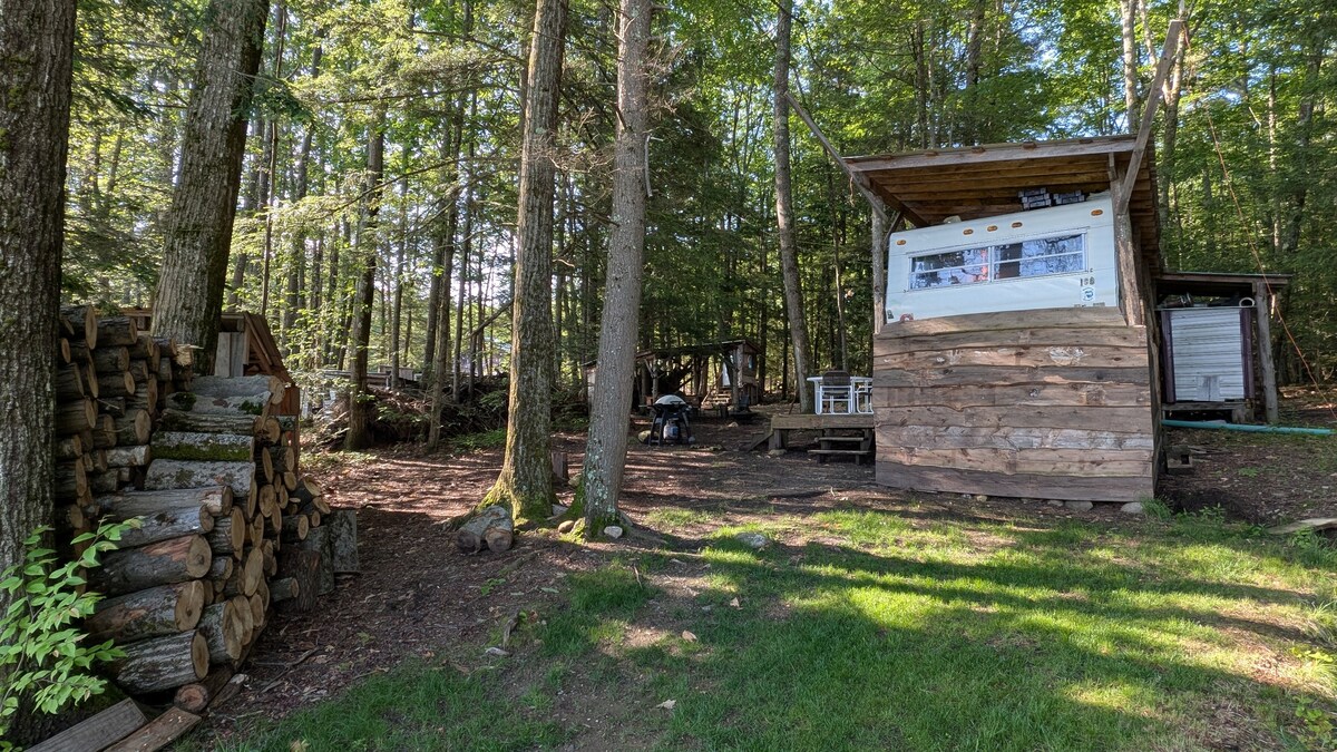 Enjoy a converted camper as your private getaway in Southern VT. Less than 10 min to downtown Brattleboro, yet nestled in the woods for a quiet retreat. Full galley kitchen and living/lounge area. Wood stove for primary heating (electric backup for not so cold days). Outdoor spaces include a fire pit, deck, pool table, hot outdoor shower, outhouse (composting toilet), and forest for galavanting. The place is a perfect fit for two adults (queen bed) and one kid (63" long fold down couch).