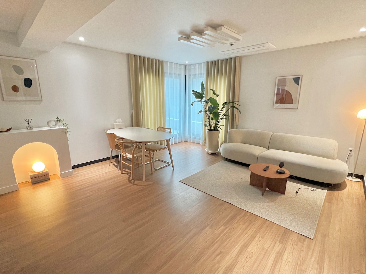 濟州Mochine 26/1.5房間/客廳+廚房+房間+更衣室/距離機場/Shinra免稅店10分鐘,緊鄰濟州市/