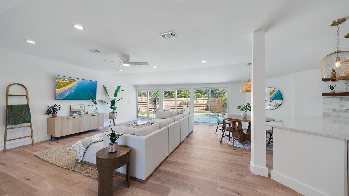 完全改造的私人度假勝地。 來放鬆身心,放鬆身心,留下難忘的回憶! 從抵達的那一刻起,你就會感受到這間旅居的獨特之處,即是平靜、溫馨的氛圍。 這間寬敞的3臥室2浴室設有令人驚嘆的溫水泳池、私人後院和時尚的裝飾。 無論您是躺在溫水泳池旁,在明亮的開放式生活空間享用美食,還是探索附近的海灘,這個家都是難忘假期的完美選擇