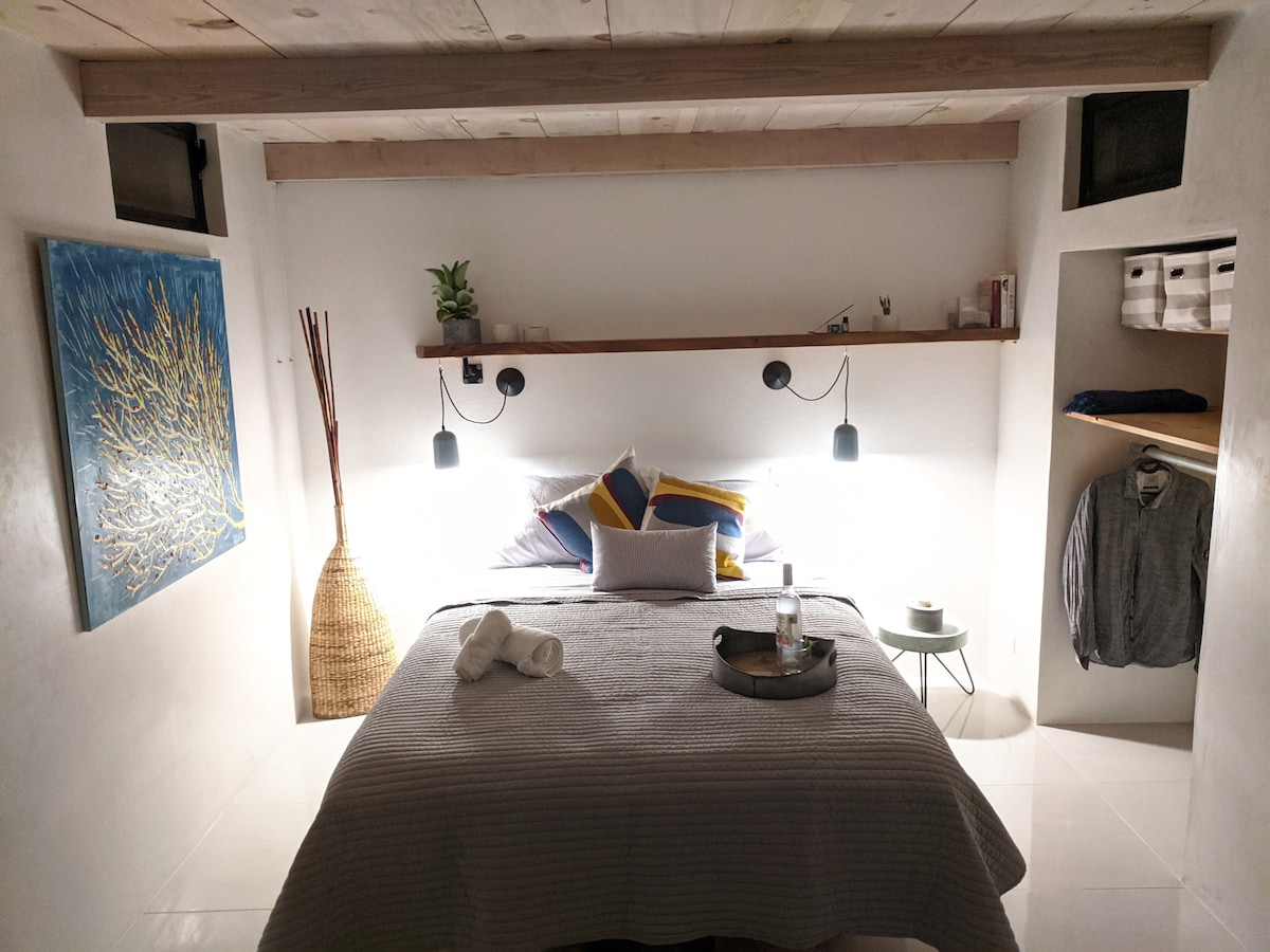 Situated in in the desert 3-4 miles north of town you can definitely relax here! This is one of 5 rooms, with some shared areas, a 3 minute walk to the Hot Springs beach! Completely off-grid and eco-friendly,No crowds and no cars means No noise.
