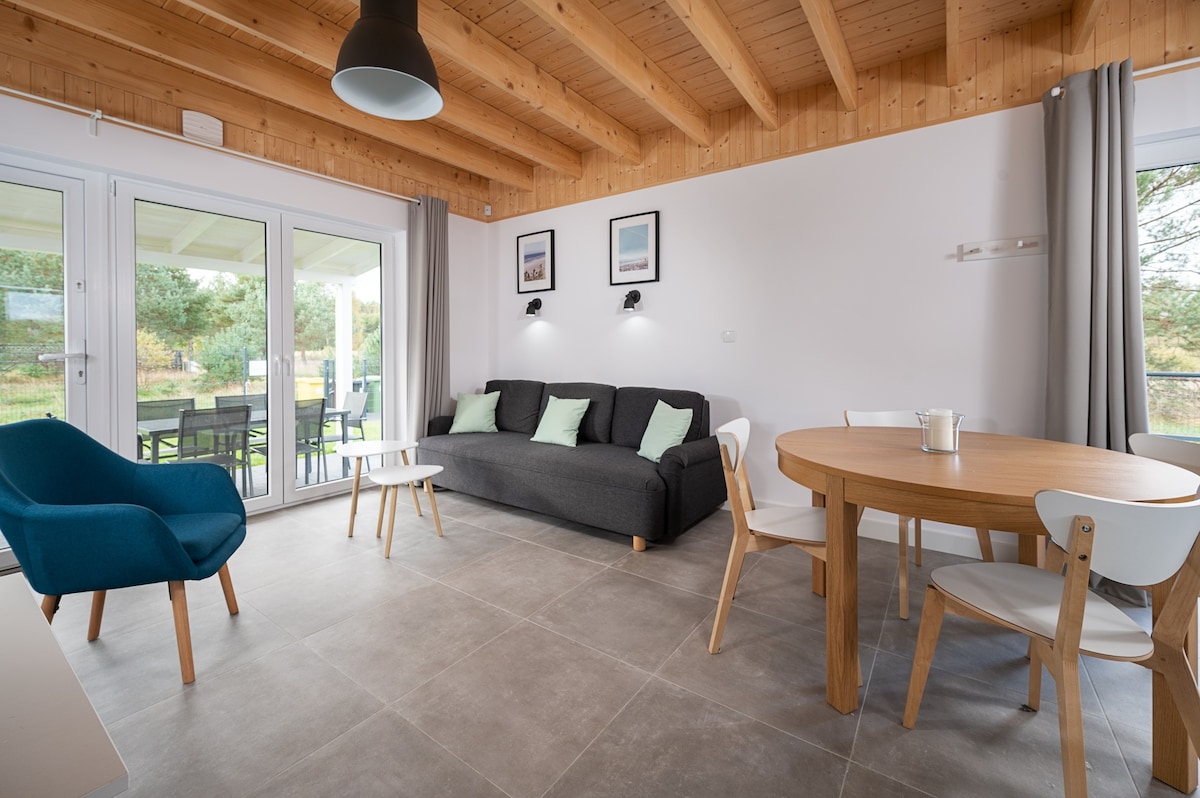 Klimatyczny drewniany dom w skandynawskim stylu o wysokim standardzie, położony w spokojnym miejscu Białogóry. Jest jednym z czterech domów znajdujących się na działce w niedalekiej odległości od lasu. Do dyspozycji gości domu jest przestronny, zapewniający prywatność, zadaszony taras. Na terenie znajduje się plac zabaw i zadaszone miejsce na rowery. Każdy z domów posiada własne miejsce parkingowe.
