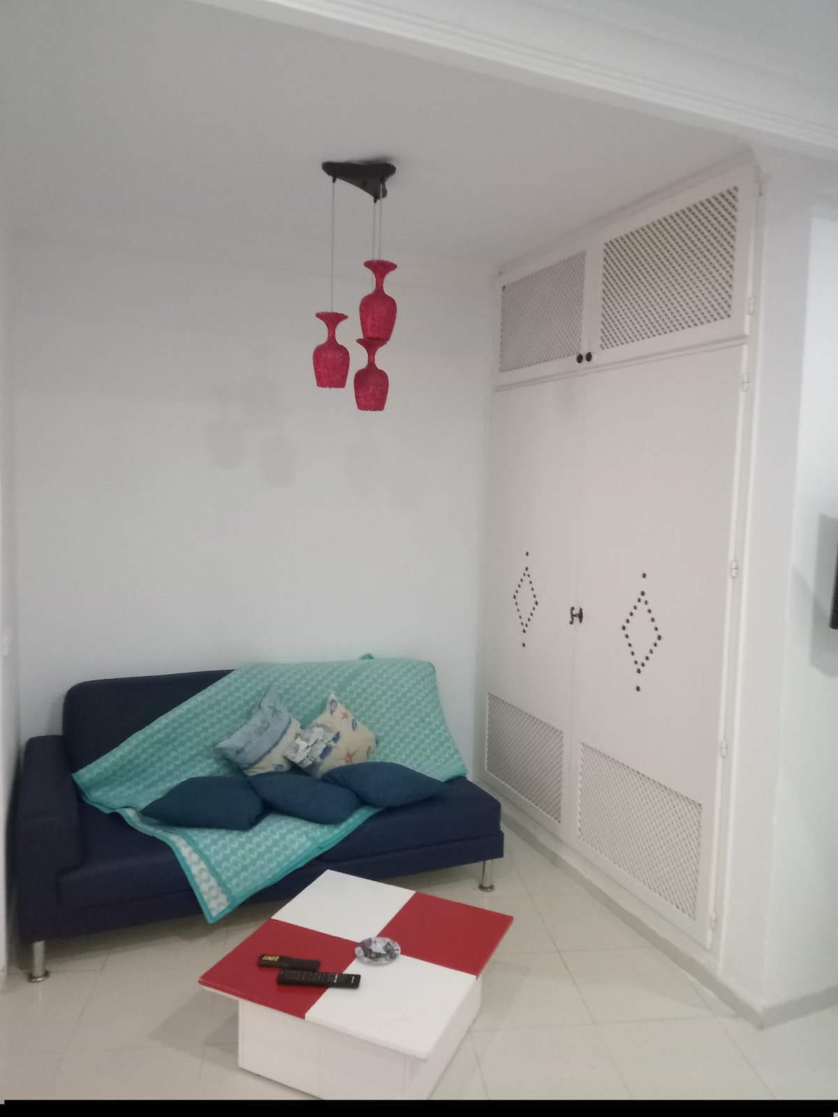 90平方公尺的複式出租公寓,位於Hammamet Sud ,距離海灘2分鐘,位於高聳的區域。 維護良好,設備齊全。 一樓有一間客廳,配有2張沙發牀、設備齊全的開放式廚房以及淋浴間。 樓上有兩間臥室、一個露臺和一個停車位。