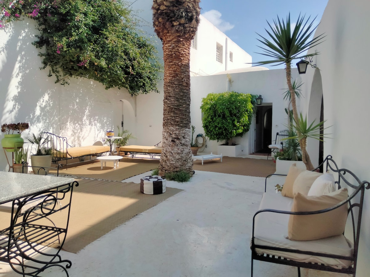 迷人的獨立平房。這棟平房是一棟歷史悠久的阿拉伯風格別墅的附屬建築,位於一個安靜的區域,靠近所有服務設施,距離舊城區、旅遊區和哈馬馬特的美麗白色海灘僅幾分鐘路程。 套房的每一個細節都經過精心設計,確保您能享受完全放鬆和舒適的住宿體驗。 非常適合情侶或四口之家入住。