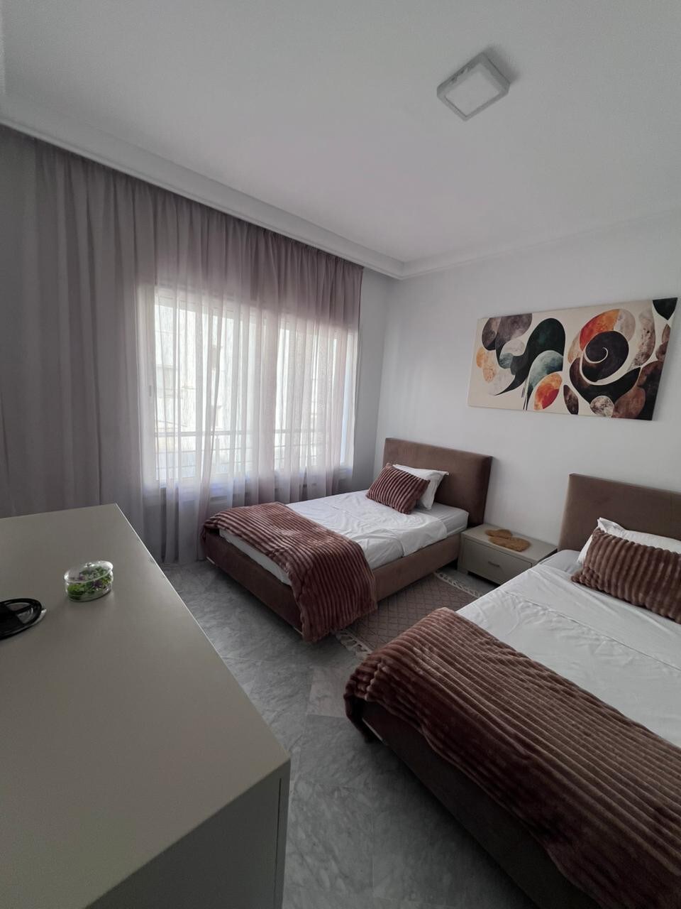 Etg 2的完整豪華住宿180平方公尺,有3間臥室。 住宅區設備齊全,適合家庭或商務人士入住。 地理位置理想,靠近通往蘇塞市中心或海灘的高速公路,以及Hammamet或Monastir軸線。50公尺外有2家汽車租賃公司,以最優惠的價格租車。 住宿期間可免費使用距離住宿800公尺的Sousse健身房Body Line Sousse ( Musculation、Cardio、Taekwendo )