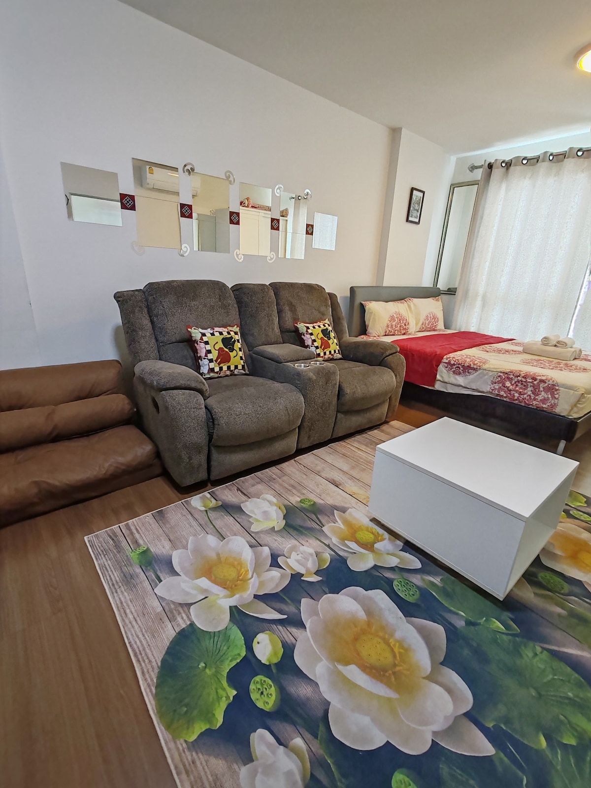 芭提雅最大的水系公寓,两层游泳池🏊♀️超大面积的人造沙滩🏖️细腻柔软的沙子、非常舒适、适合每个成人休息、小朋友玩耍。 一楼房间直通泳池房,阳台可以直接下泳池、方便快捷、舒适、如痴如醉,如梦如幻的迷人感觉... 二楼有无边泳池、桑拿 房间阳台有座椅、房间有一个用餐区和一个厨房设备(餐具齐全)提供毛巾和床单 房间有免费Wi-Fi、 另外我们园区有很多房间供您选择 https://www.airbnb.com/h/laguna-e2 https://www.airbnb.com/h/laguna-c2 芭提雅最大的游泳池 -花园 -沙滩🏖️ -儿童游乐场 -水上滑梯🛝 -健身房 -露台 -室外泳池按摩浴缸🛁 -桑拿🧖♀️ -乒乓球桌 -4层停车场 园区内:杂货店、美发美甲店、咖啡店☕️、洗衣房、按摩店