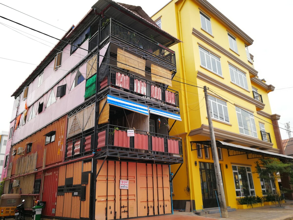 A unique building composed of 4 shipping containers transformed into appartments. You will have one whole 40 feet container on the first floor for yourself sharing the kitchen with the adjacent container home. Me and my family live in the upper 2 container homes on the second floor and have our own kitchen. Every container home has its own private bathroom and its own private balcony.