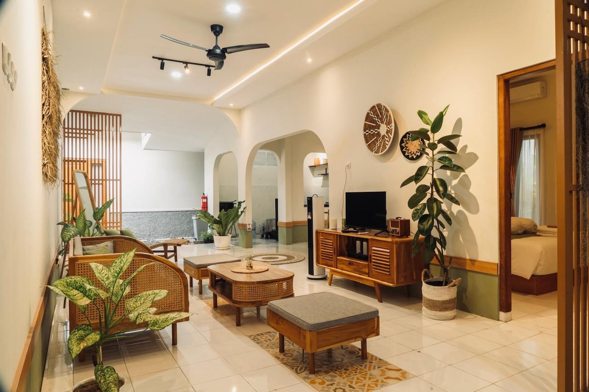 Sagenah在爪哇語中是友好的意思。4間臥室和4張床。 我們提供最佳的待客之道,帶來舒適和溫馨的感覺,確保您在入住期間感到舒適。距離日惹市中心僅15分鐘路程,附近有很多當地美食。 寬敞的客廳可容納所有親友。 配備全套廚房和免費泊車位,可為旅人創造奇妙的氛圍。