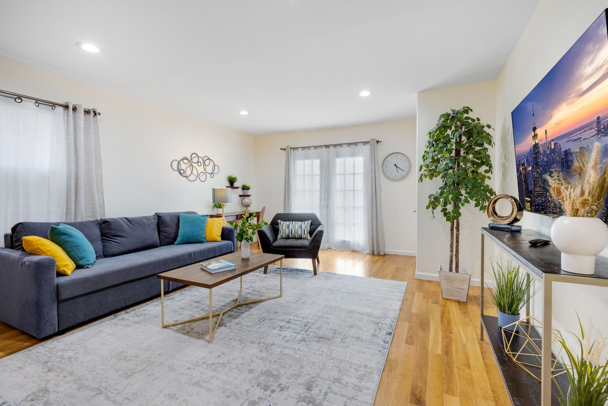 Your family will be close to everything when you stay at this NYC & MetLife Stadium Commuter Dream Home! (<20min) Located just steps to the bus stop that takes you to Port Authority Bus terminal near Times Square in NYC, as well as a free Ferry Shuttle that takes you to the Ferry for an even faster commute! Enjoy a nice stroll on the Hudson River walkway with breathtaking views of the NYC skyline or eat at any one of the local restaurants- including a delicious brick oven pizzeria downstairs!