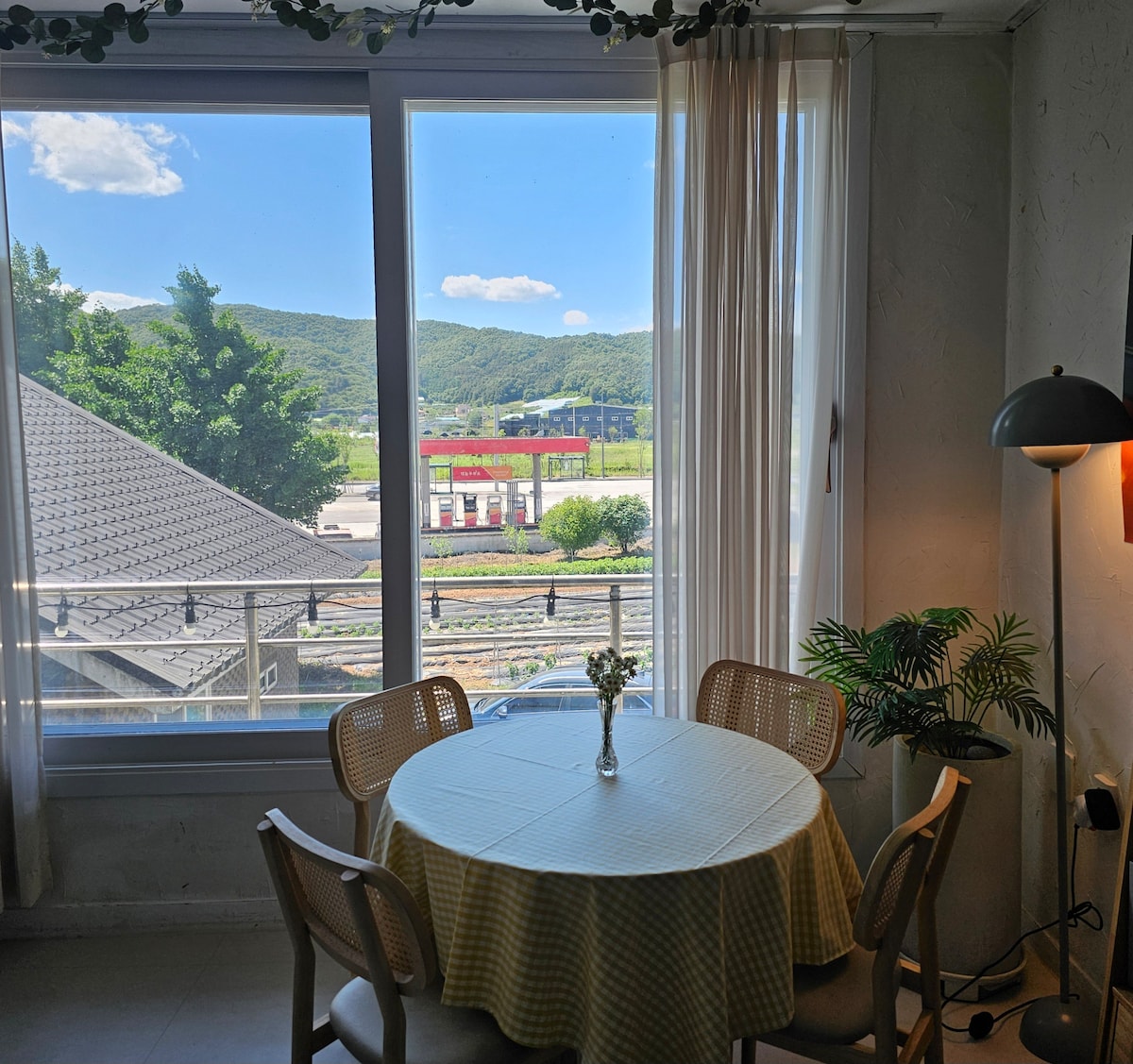 後面可以看到後山的松樹林,左邊有龍州書院和約 200 坪的花園,前面可以俯瞰安靜的鄉村景觀。 花園尚未完成,我們繼續種植花卉和樹木 在晴朗的日子裡,您可以看到遠處的北漢山,欣賞春夏秋冬季的美麗花卉和樹木。 這是一個安靜的住宿,您可以放鬆身心。 一樓和隔壁房子都非常獨立,不會面對面,保證隱私 室內裝潢偏向簡單,採,採用白色和中性色調。 可攜帶小型寵物,提供2個坐墊和1個飼料碗 投影機和KTV伴奏機 有兩個麥克風,包括無線麥克風 安裝了連接露臺和花園的雲橋,讓您更方便地欣賞花園和景觀 夏天有兩台風扇、冷氣機、除濕機和煎餅機 這是一個每天都在升級的德恩民宿