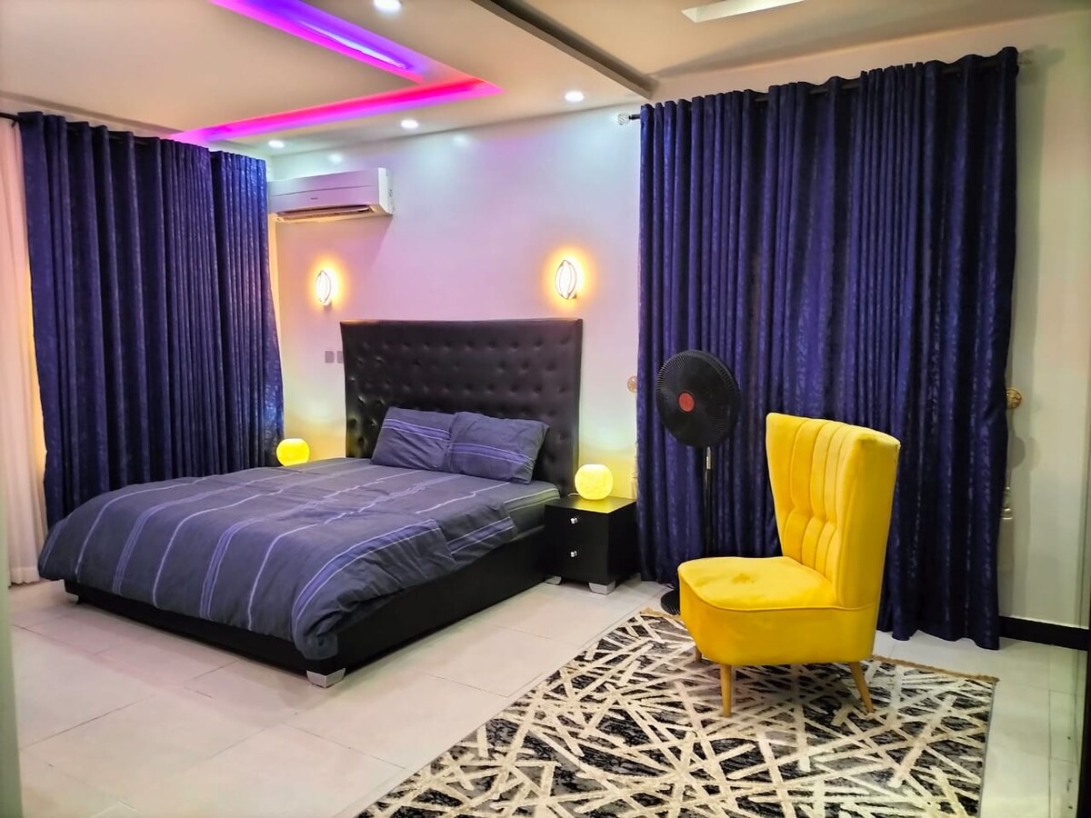 This Upscale designed Smart 2-bed apartment is automated for absolute comfort and has everything you need for your stay in Abuja. It's Located in a safe neighborhood around American Embassy Staff Quarters adjacent American International School Abuja with close proximity to major locations in the city center. -5mins drive to National Stadium -10mins drive to International Conference Center, CBD - 13mins drive to Silver Bird Galleria on Memorial Drive - 16mins drive to Transcorp Hilton, Maitama