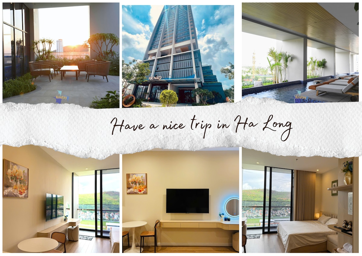 -在下龍美麗的海景陽台單間公寓中體驗難忘的住宿。 - Miss Apartment面積為55平方米,位於à la carte Ha long大樓28樓。這間很棒的單間公寓擁有壯麗的海景,可輕鬆前往您需要的一切。 -位於大樓內,有無邊泳池,可欣賞海景和下龍最美麗的空中酒吧。 -如果這是你第一次與我合作,不用擔心,我是你的當地朋友,隨時可以回答任何問題。