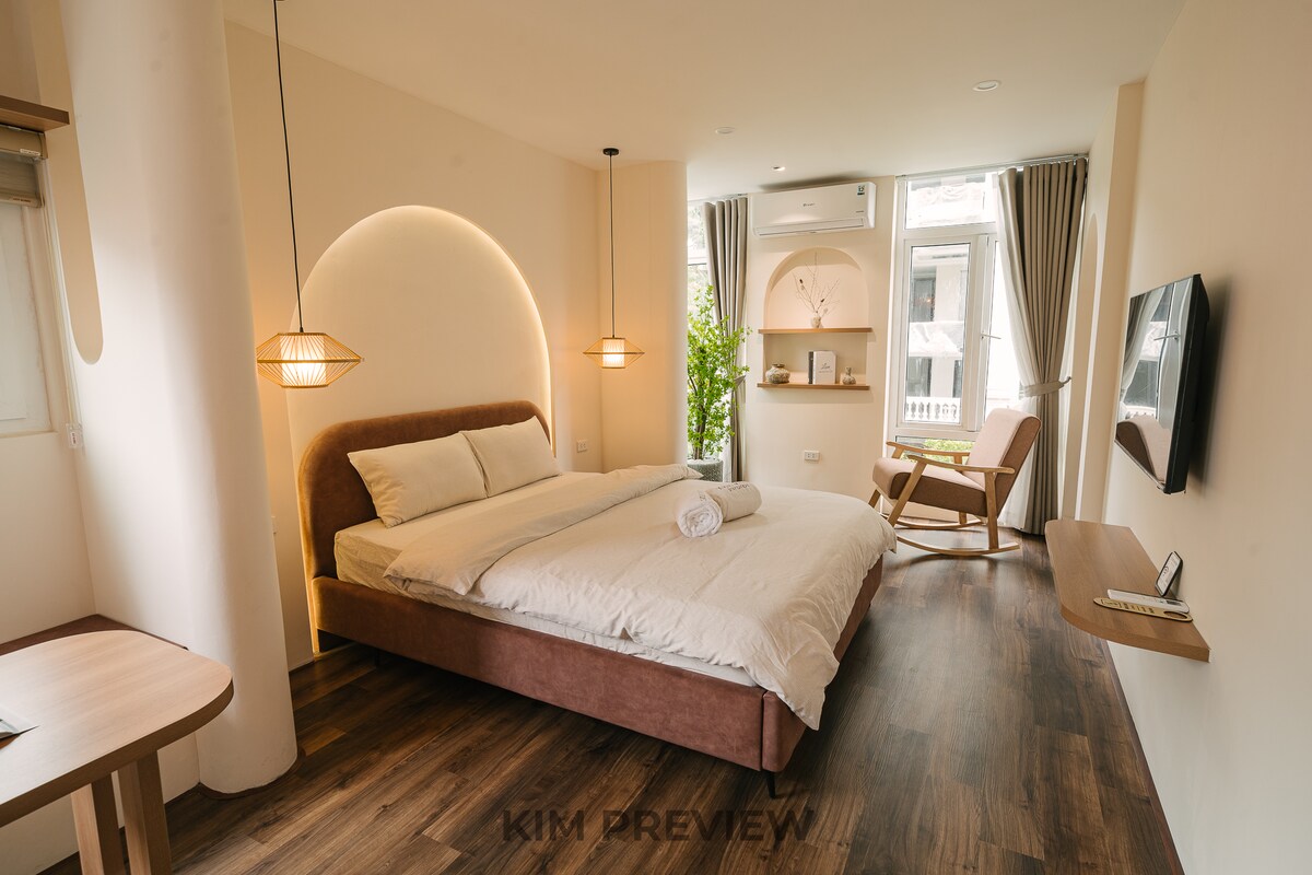 Japandi Comfort,靠近還劍湖(Hoan Kiem Lake)–這間40平方米的公寓距離河內的標誌性湖泊僅5分鐘步行路程,融合了日本的極簡主義和斯堪的納維亞的舒適。 享受明亮的窗戶,可欣賞街景、設備齊全的廚房、Netflix和洗衣機。 周圍有咖啡廳、地標和舊城區的魅力,是尋求風格、舒適和便利的旅客的完美度假勝地。
