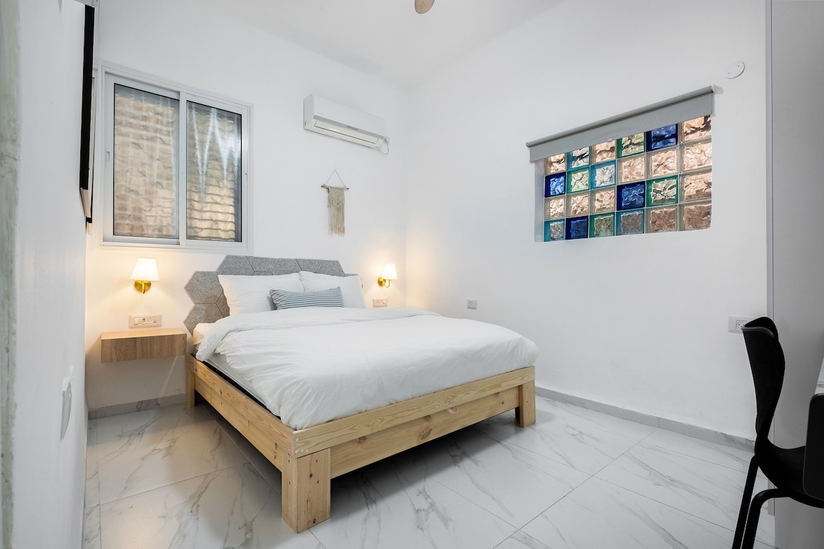 入住這間位於市中心的公寓,最多可入住2人,配有飯✔店標準的牀( 180公分) ,位於海法市中心。 這裡是夜生活的發生地;海法最好的酒吧和餐廳。 乘坐公共交通工具可✔輕鬆抵達; Metronit (海法版的歐洲電車)就在建築物的腳下。 步行10秒鐘即可抵達Carmelit地鐵站。 步行即可抵達✔火車站( 9分鐘)。 附近有許多旅遊景點。