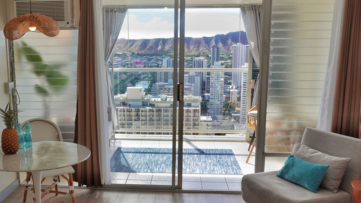 *Aloha! Welcome to the cutest studio in Waikiki!* This is a fully remodeled cute studio with kitchenette in the Hawaiian Monarch. Where everything is walking distance away. Featuring the best Boho style interior design, diamond head and river view, south facing big window, standing desk with monitor and keyboard, 100Mbps wifi speed and projector for 80 inch screen size! NEVER TOO SMALL to have the best stay in Honolulu Update on May 2025, *CHEAP PARKING! And new AC! Parking is $20/day