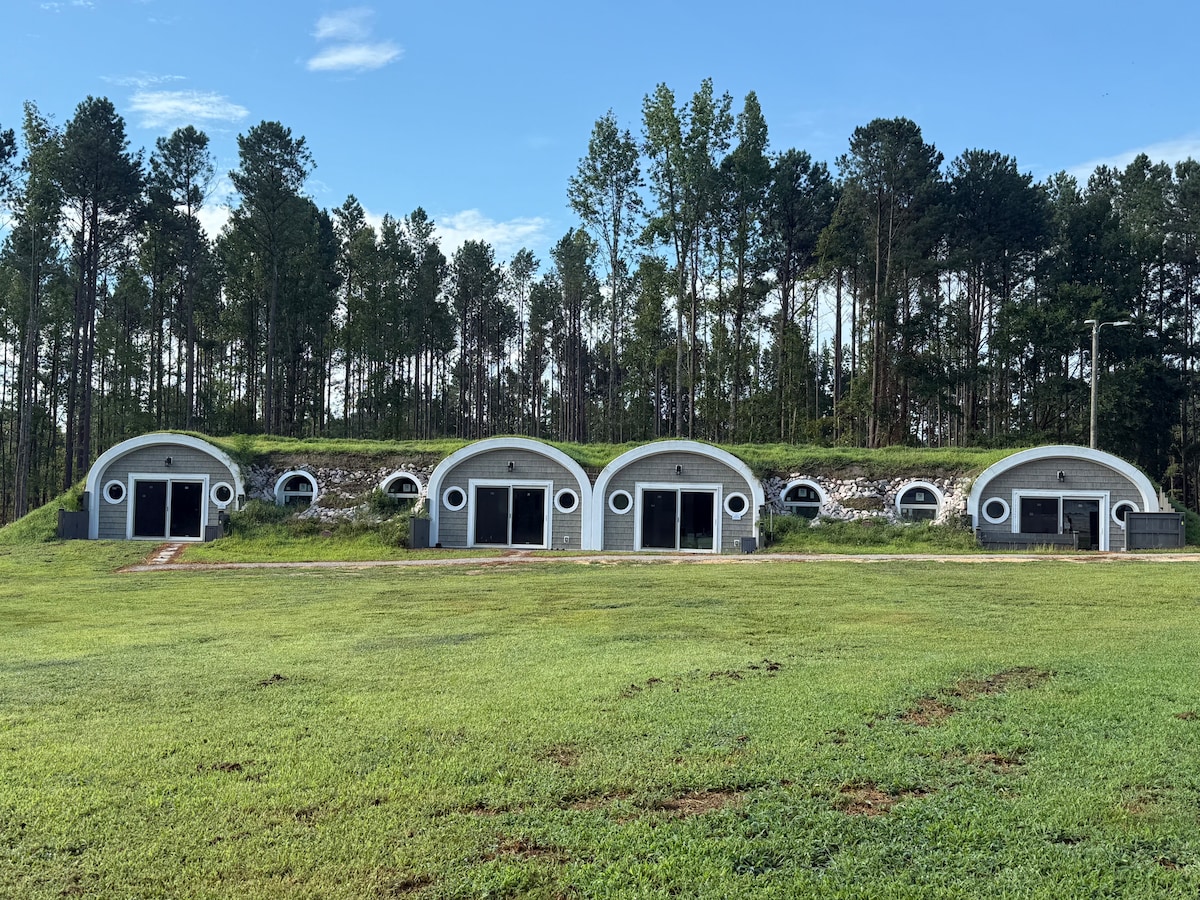 Sasquatch Ranch! A fun, safe unforgettable stay & experience! Create memories! In this earth home middle unit you get *Private deck! *Family room! *Equipped kitchen! *Coffee maker! *Washer/dryer! *4 beds- 3 in the bedrooms and a pullout couch bed -sleeps 6! *A/C! Dehumidifier & Air purifier! *T.V’s & Starlink internet! *Private 3/4 Bathrooms! *Pet mini goats! *Catch n release fishing! *Paddle boat! *Beach area w fire pit! *Corn hole, fire pits & grill! *Frisbee golf! * Fresh eggs * trails