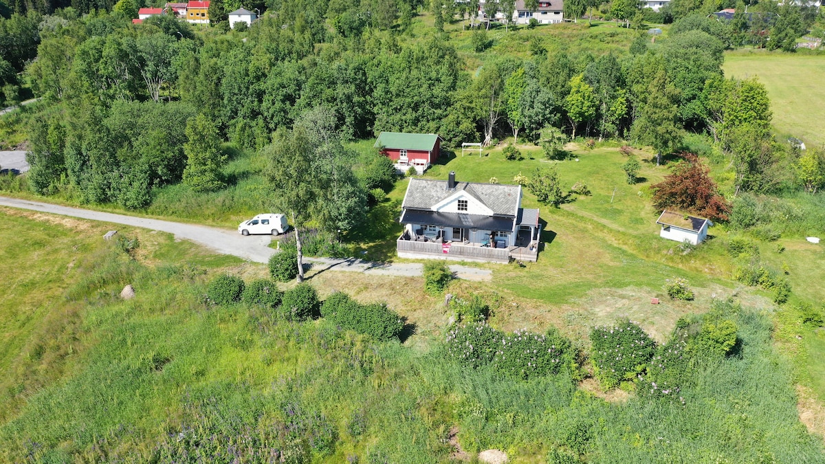 The Old House of our farm, charming house with a spectacular mountain wiew! The house is built about 1880, the bathroom and the kitchen is renovated. Here you can travel back in time, no tv.. The stairs scueecs, and the floor can be a bit cold in the winter, but all is forgotten when you fire up the fireplace. The island is perfect for hiking, biking and kajaking. Check in after 4 p.m, check out before 12 a.m. Transportation to or from the boat can be arranged. We wish you a peaceful stay.