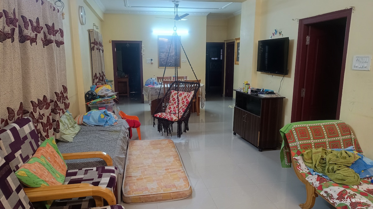 Embrace our modern day living, ideal for friends, family & corporate travellers seeking a relaxing and luxurious stay in heart of Vijayawada. Our new spacious 3BHK(AC) flat is situated in Ajith Singh Nagar, which is 10 mins drive to railway station,MG Road & Benz Circle, 20 mins to Kanaka Durga Temple and 30 mins to Amaravati & Airport(VGA), near to attractions like Krishna river front, Kondapalli fort. This flat is accompanied by board games,carroms etc. to spend quality time and bond together.