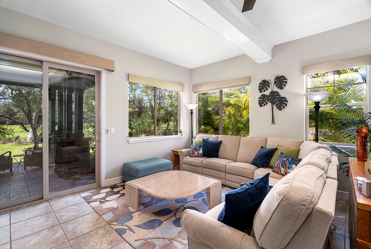 Aloha!在這間以夏威夷風格裝飾的3床/2.5浴室聯排別墅中放鬆身心。 享受這個時尚、寬敞、通風的房源,配有定制廚房、室外陽台、烤肉區和開放式起居區域。 在陽台上品嚐熱帶飲料,同時欣賞俯瞰莫納拉尼北高爾夫球場的壯麗景色。 您的度假勝地包括Kulalani泳池和健身區,以及私人Mauna Lani海灘俱樂部。 熔岩豪華房地產RB-23348