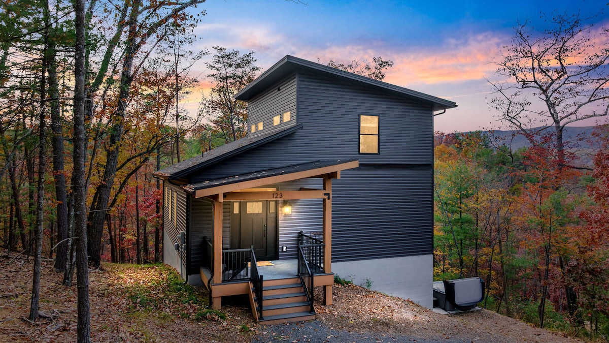 經過全面翻新的小木屋坐落在樹林之間。 這間舒適時尚的小木屋是參觀布萊斯度假村( 1.5英裏)和附近許多酒莊和徒步旅行的理想場所。 熱水浴缸是放鬆身心、呼吸山間空氣的理想去處。 多個戶外空間和消防桌可供享受。 全新記憶泡沫牀、電壁爐上的65英寸電視、花灑淋浴頭、儲備充足的廚房 房子的每一寸都是為完美的浪漫或家庭度假而設計的。