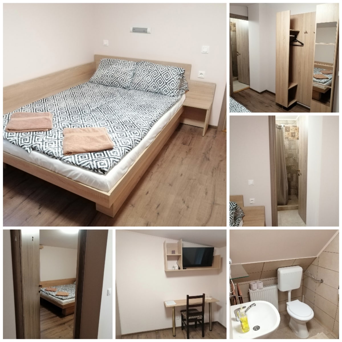Dear guest the house is very quite and even if it looks small, there is enough space for a couple or a family with small children. The ground floor has a complete bathroom, kitchen and a big passageway, while the upper floor has the sleeping area- Big bed, extendable sofa, library, working table and 3 balconies (River, yard and mountain view).