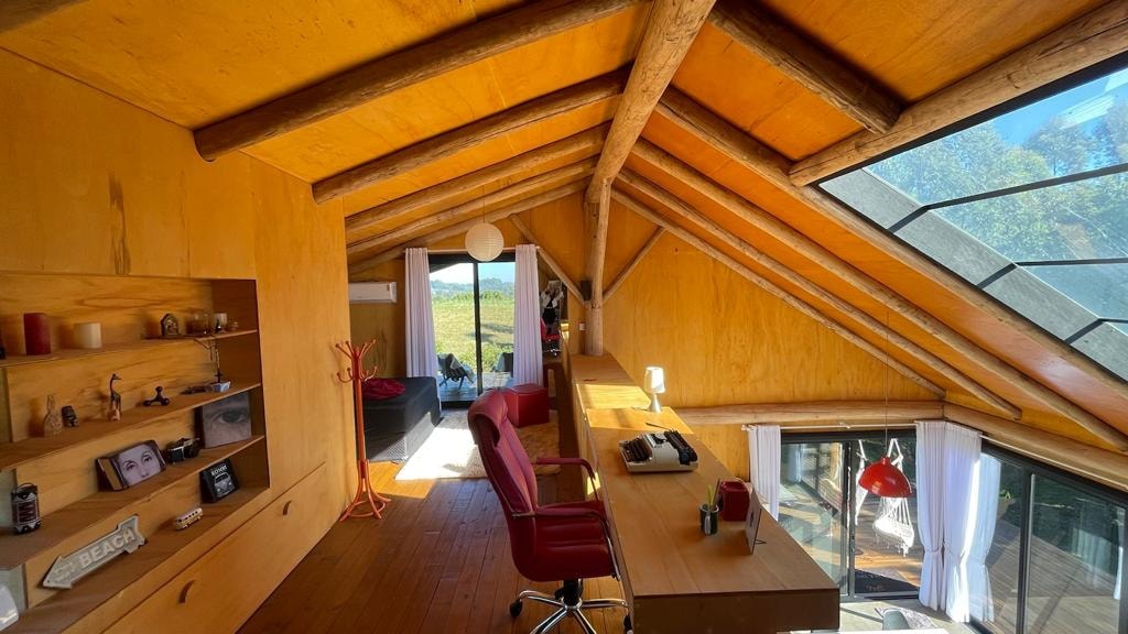Chalé romântico com jacuzzi e vista do pôr-do-sol