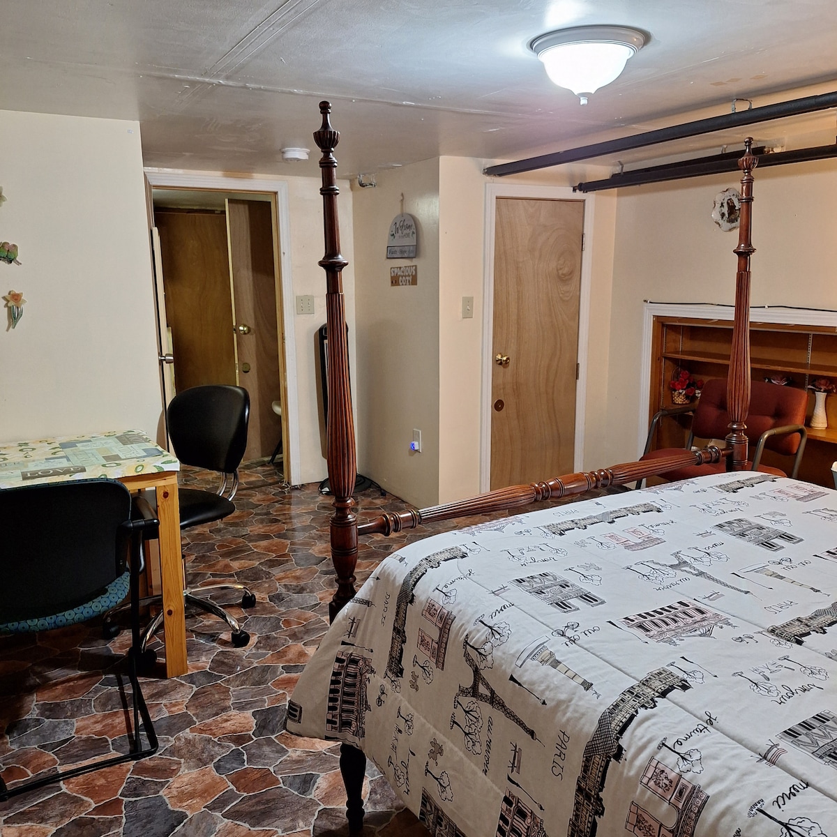 預訂此旅居前,請閱讀所有資料。 這是一套地下室公寓,配有廚房、臥室和浴室。 在您預訂前,以下是一些考慮因素。 天花板從頂層到地板的尺寸略超過6英尺。 有一個子泵。 你通常會在沖水時聽到。 但是,噪音並非難以忍受。 但如果你睡眠淺,也許這不適合你。 後院有1個免費停車位,街上有免費停車位。