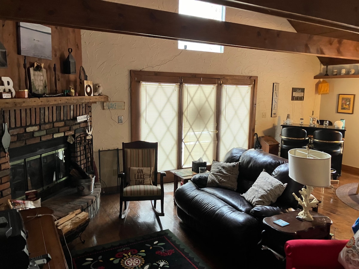 這座佔地110英畝的湖畔小屋,讓您在熱水浴缸中放鬆身心,重新與大自然連接。 鄰近的州立公園佔地超過14,000英畝,有湖泊和步道。這個小家是大自然與奢華的交會之地!!電壁爐將在您休息和觀看最喜愛的節目時迎接您。有火坑、木炭烤架和全尺寸廚房電器。房東住在房源內,但沒有共用設施。 此房源配有星光連接網路,但不保證。