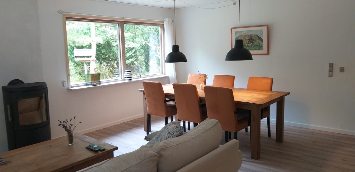 房子面積為90平方米,位於博恩霍爾姆松樹林中,步行約10分鐘即可抵達海灘和豐富的自然景觀。可直接使用非常大的部分遮蔭露臺,配有遮陽篷、花園家具、日光浴床和烤架。房子包括帶壁爐、電視和高速WiFi的客廳。大餐桌。廚房配備齊全。1間大浴室,配有淋浴間,1間小浴室,配有淋浴間。1間臥室,配有雙人床,2間臥室,配有2張單人床。 房子會不斷翻新。