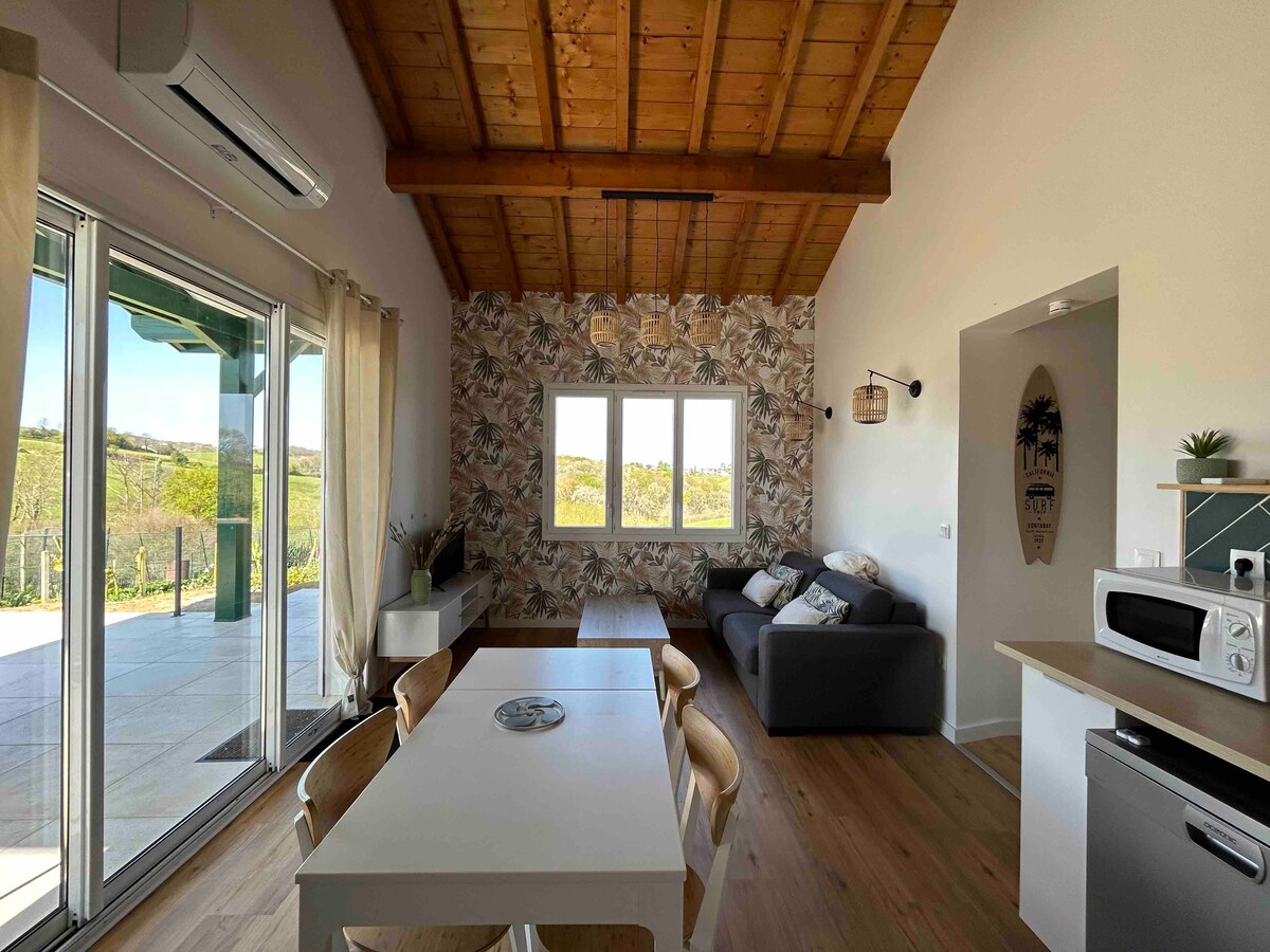非常漂亮的小屋,位於32平方米的新單層房屋內,有露臺和花園。 安靜地位於Hasparren村的高地上,但距離市中心只有2分鐘。 非常適合放鬆身心,同時欣賞巴斯克山脈(Ursuya、Baïgura、Pic d 'Orhy )和比利牛斯山脈的絕佳景色。距離Urkodea馬術中心100米,距離巴斯克海岸和西班牙海灘25公里。 這間出租屋享有所有現代舒適設施和高雅的裝飾。