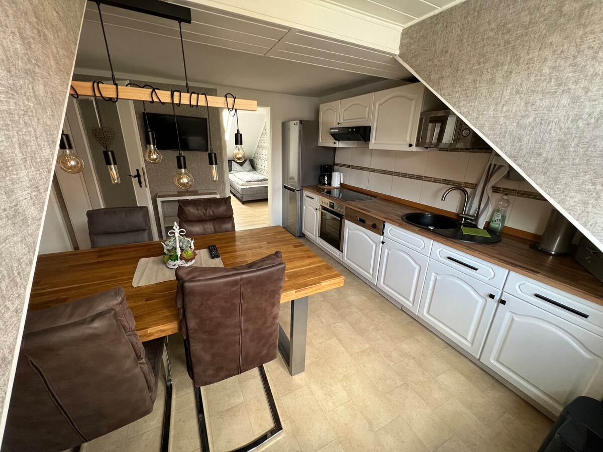 公寓是前花園建築公司Benary的舊倉庫建築中的一個夾層客廳。 拱形地窖作為房子的底座建於16世紀末期。 上面的半木屋在1850年左右重建,近年來全面翻修。 房子外殼的所有內牆都配有粘土石膏,從而確保舒適的室內氣候。
