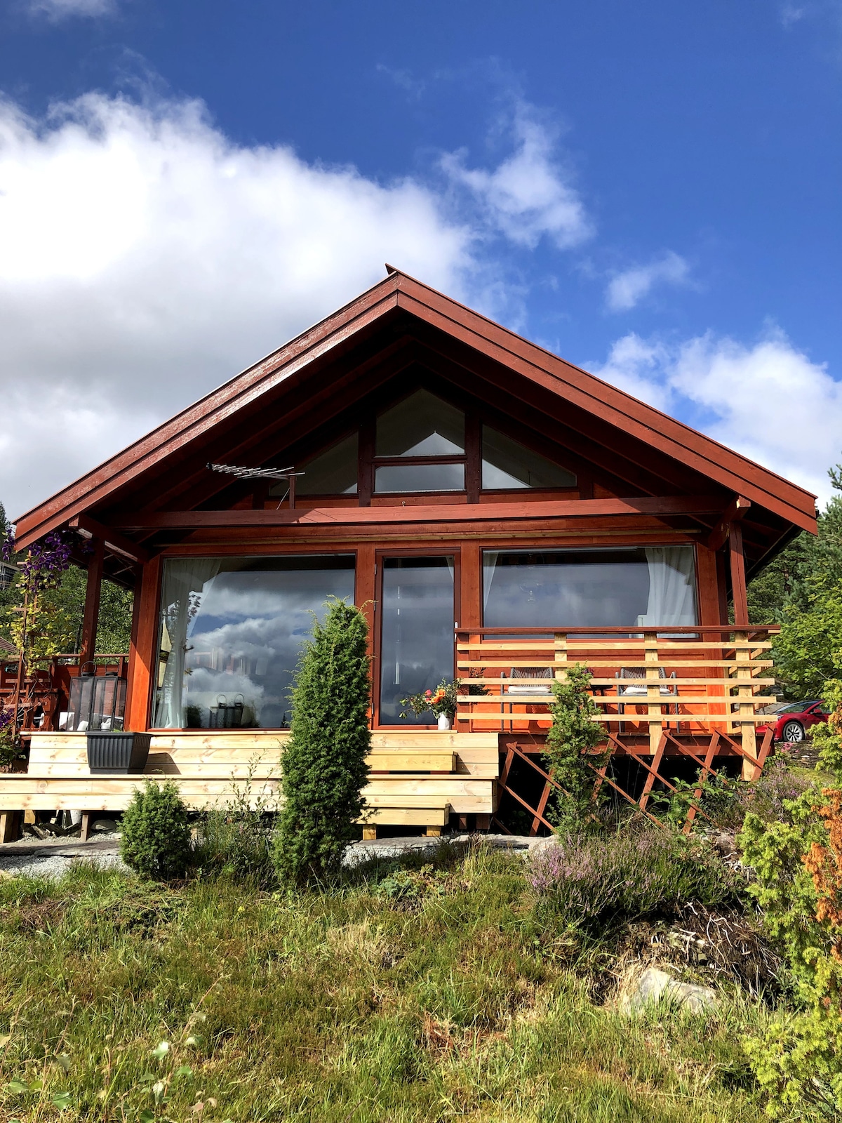 Cozy cabin by the Hardangerfjord. Here is a 180-degree panoramic view that gives a very special contact with the fjord and the mountains. By the cabin wall to the east, you can enjoy a quiet morning. In the evening you relax on the terrace to the west. On windy gray weather days, you can be fascinate by the waves right outside the living room window. The cabin has a 60s interior with its own warm atmosphere and character and are suitable for a family, a couple or friends.